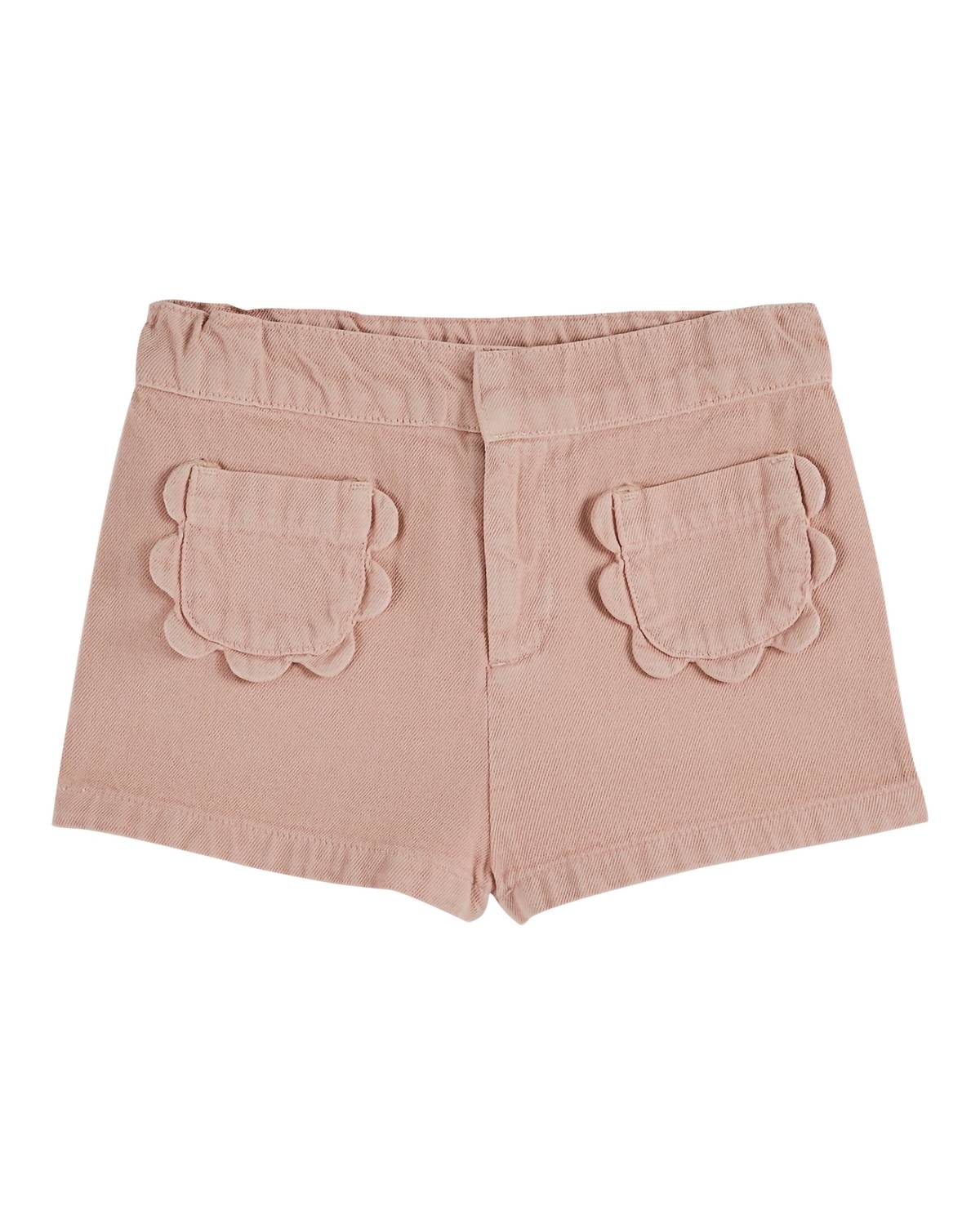 Scalloped edges. Front patch pocket(s). Back patch pocket(s). Zip fly. Button(s) at the waist. Solid pink. 100% Cotton. Made in India.