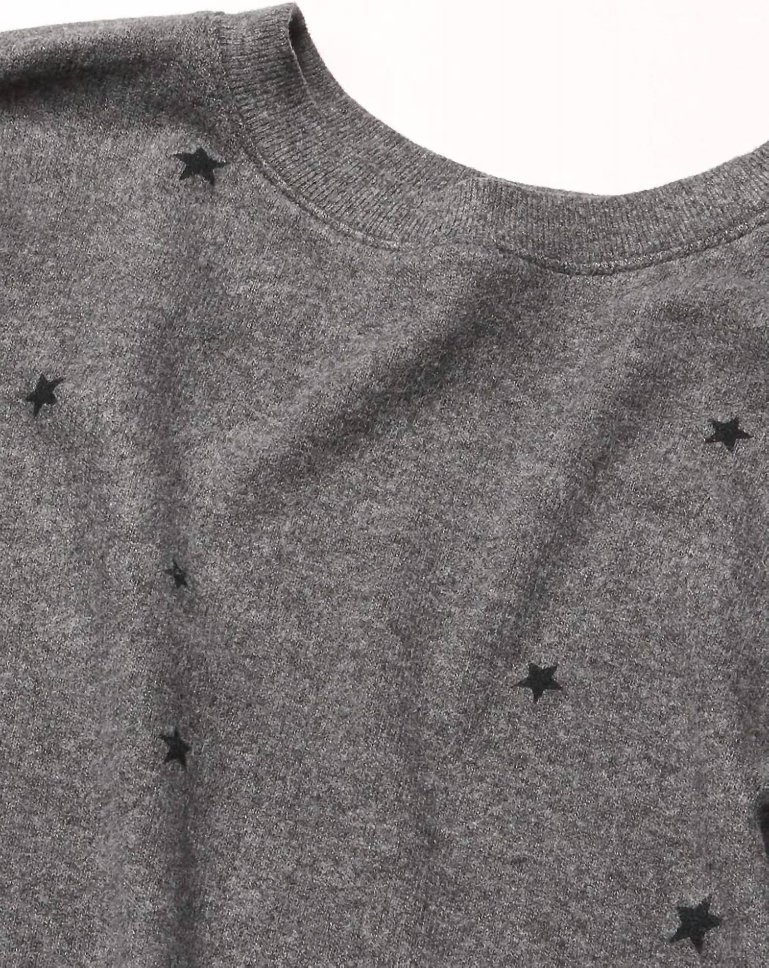 Introducing the Girl's Long Sleeve Sweatshirt Top by Splendid, a chic addition to your little one's spring wardrobe. Crafted from soft rayon, this sweatshirt features a charming grey star geometric pattern, perfect for vacation outings. Originating from an unspecified location, it embraces the nostalgic flair of 90s fashion with ease. Care instructions: Machine wash for effortless maintenance.