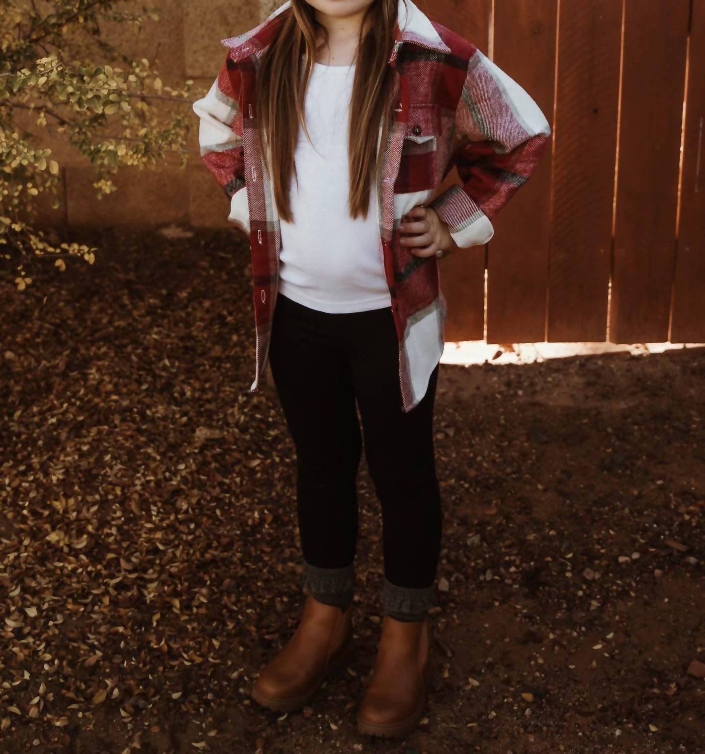 Meet the Kid's Plaid Flannel Shacket by Modern Roots Kids Co., the perfect blend of shirt and jacket for your little one's fall wardrobe. This casual jacket in a cheerful Jolly Red hue features a charming multi-patterned plaid design, perfect for layering over a tee or wearing buttoned up for added warmth. Ideal for cozy, versatile wear, its practical style makes it a staple for the cooler season.