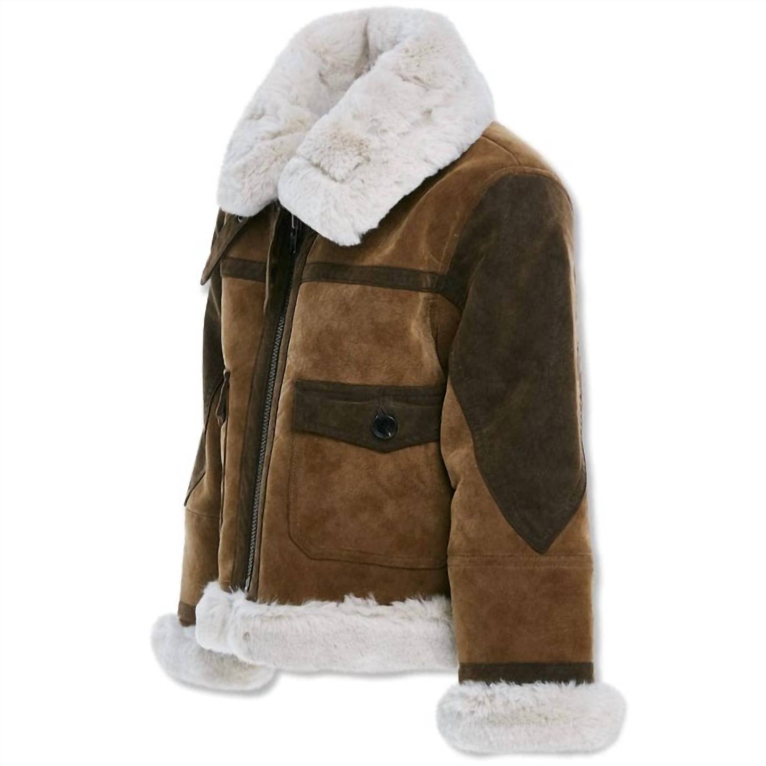 Elevate your child's outerwear with the Kids Vienna Bomber Jacket by JORDAN CRAIG, offering a stylish combination of vegan suede and faux sherpa lining for cozy comfort. The jacket features a faux fur collar with adjustable vegan leather belts, a front metal zipper, and side flap pockets with button closures, providing both functionality and flair. Designed in a classic bomber silhouette, this solid brown piece brings a touch of sophistication to any outfit. Care: Hand wash and line dry for longevity.