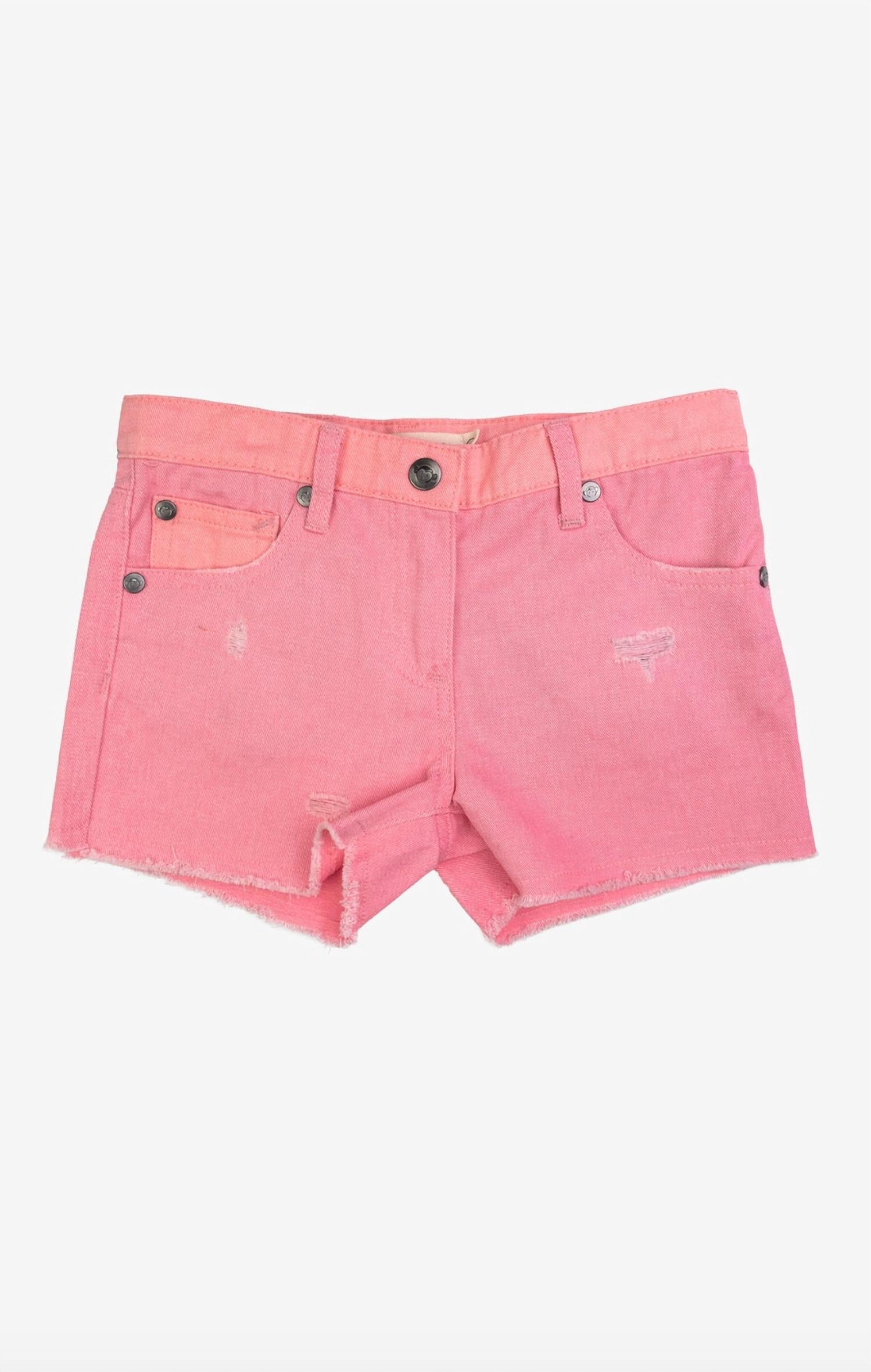 Relaxed fit shorts, with a longer inseam, mean comfortable, classic summer style. This distressed denim is made with rainbow colored cross thread, so color peeks out of the reinforced rips and tears.