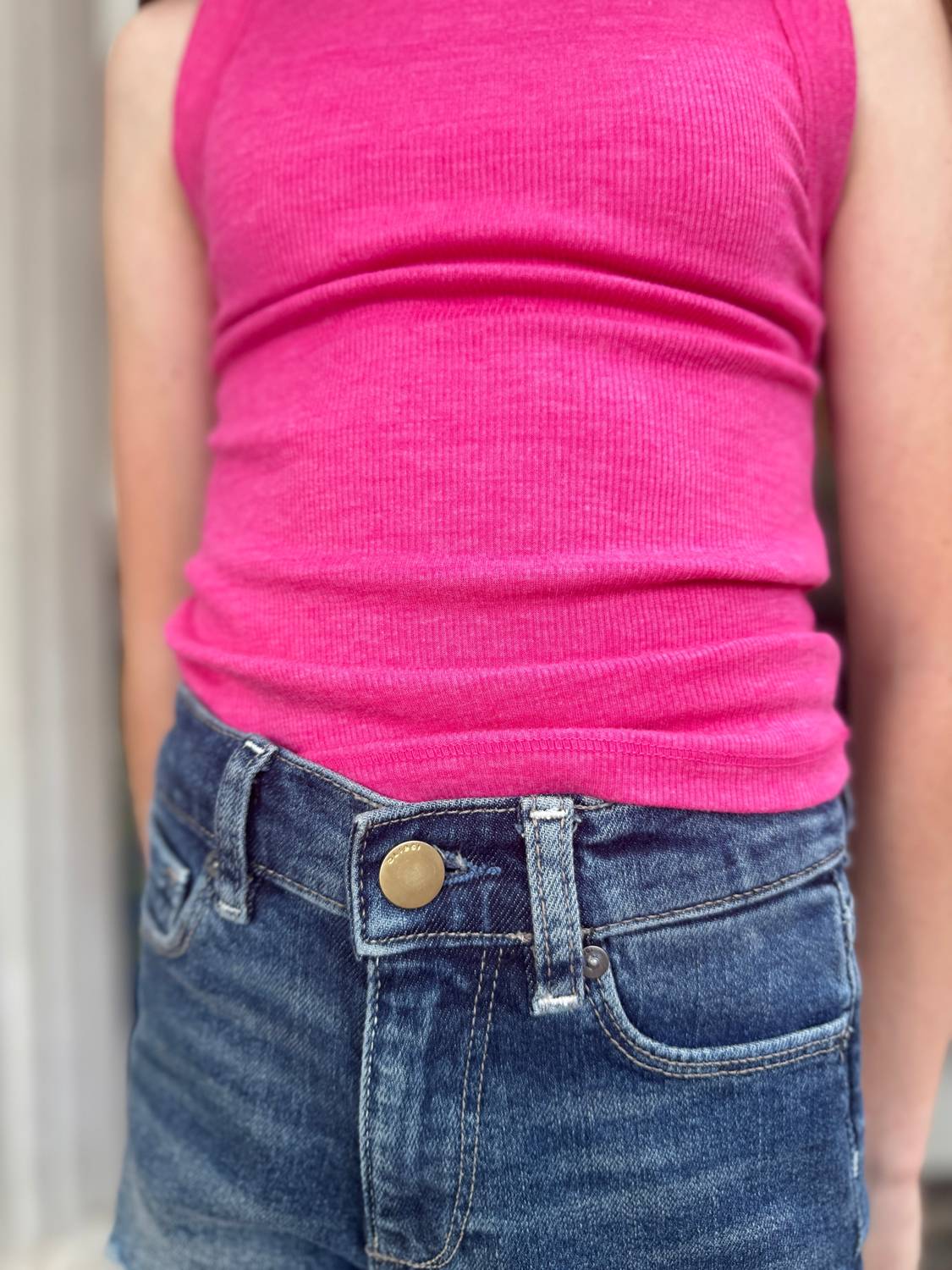 Embrace summer in heather pink tank combines a racerback and pipe trimming for a trendy, form-fitting look. Crafted from a 48% Cotton, 48% Modal, and 4% Spandex blend. Offers soft, easy movement while sitting at the waist. Proudly made in US. Machine washable for effortless care.