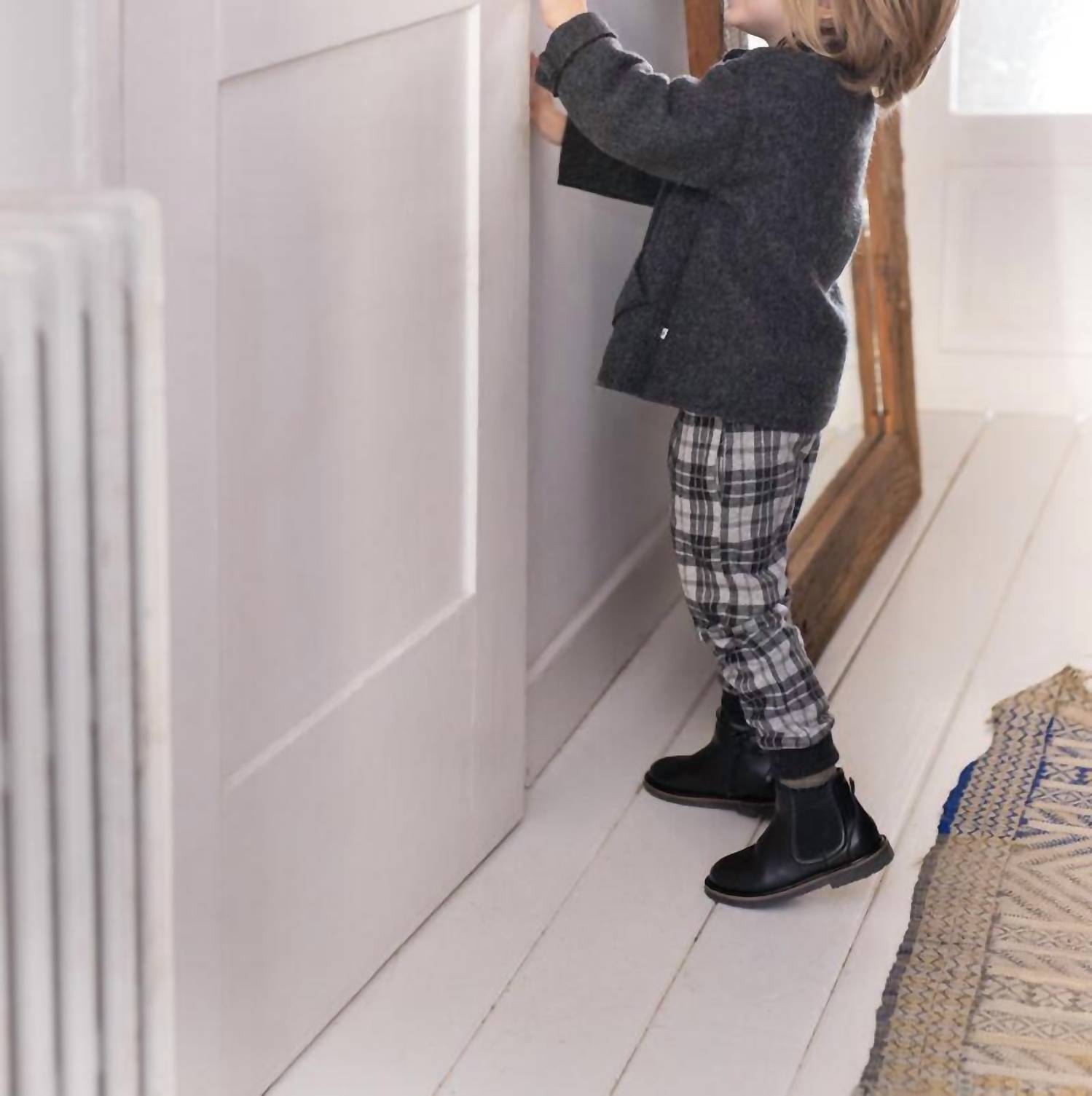 Meet the Boy Albert Pant by One More In the Family, a cozy and stylish choice for your little one's wardrobe. These extra soft checkered pants come in a trendy Anthracite hue, featuring an elastic finish at the ankles and convenient side pockets. Made from a cotton blend comprising 50% Cotton, 28% Polycotton, and 22% Polyester, these pants showcase the brand's commitment to comfort and minimalist design, crafted entirely in Spain. Ideal for babies and toddlers aged 0-48 months, elevate your child's daily wear with this piece that embodies both practicality and elegance.