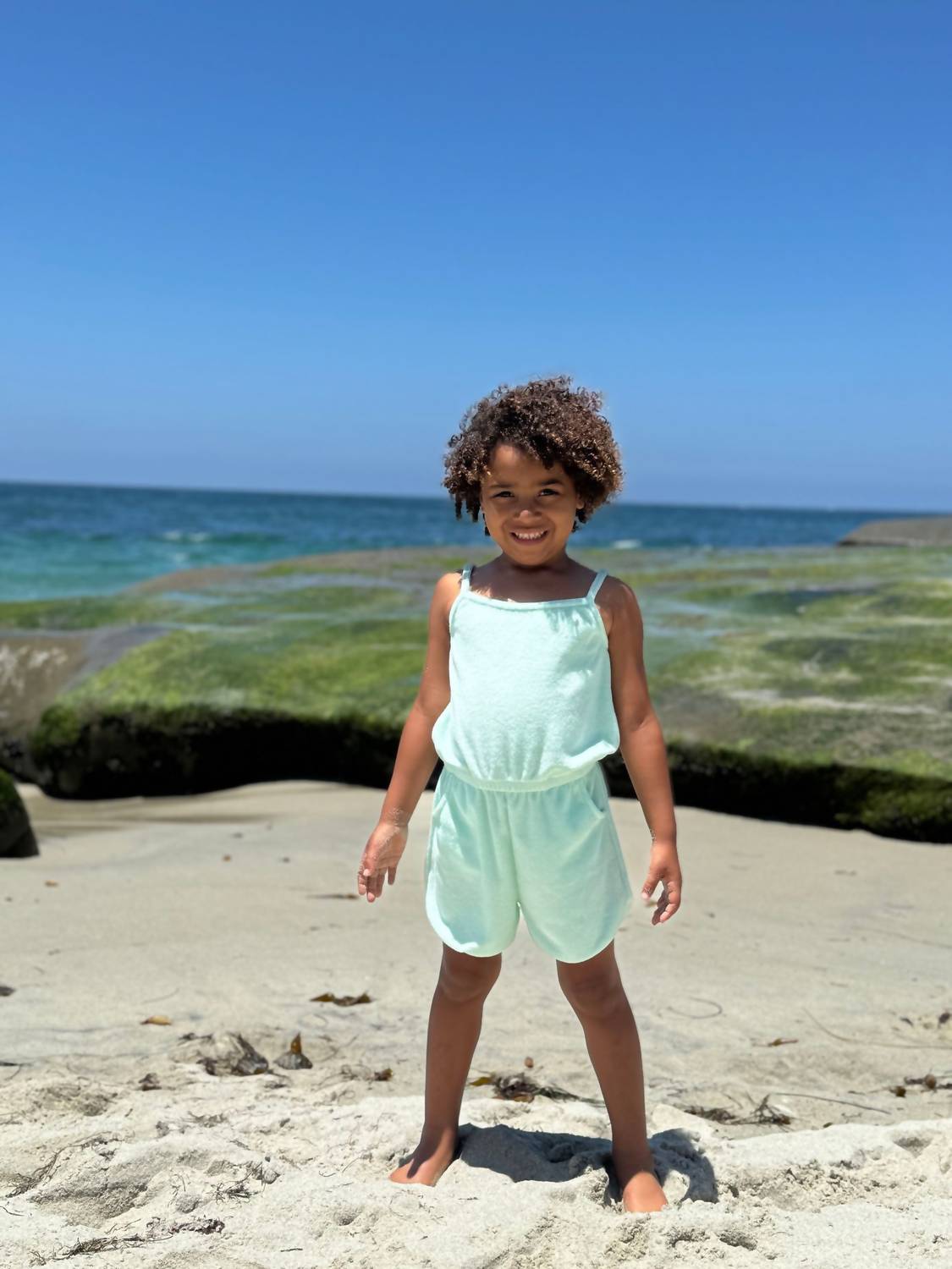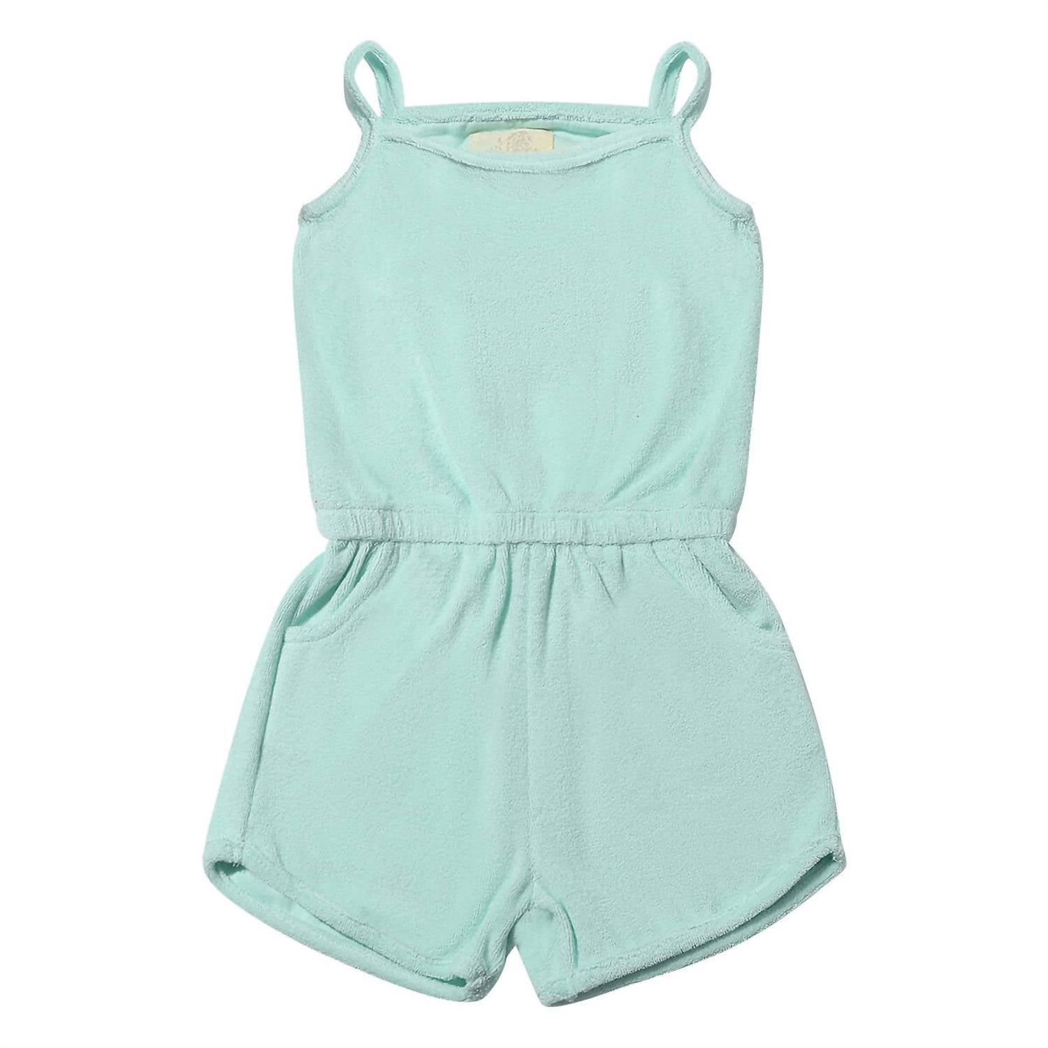 Wrap your little one in comfort and style with the Shelby Romper by VIGNETTE, perfect for summer adventures. Made from soft, textured 100% cotton terry cloth, this romper ensures gentle wear for sensitive skin. Designed for girls, it is available in a cheerful green to brighten up any playtime. Care for this romper by hand washing it to maintain its quality.