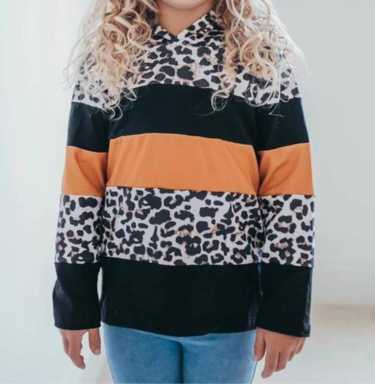 Adorable Sweetness - Kid's Rust Black & Leopard Print Fall Winter Hoodie Shirt