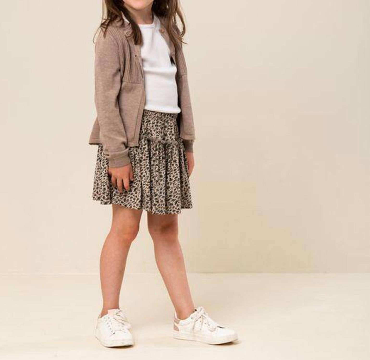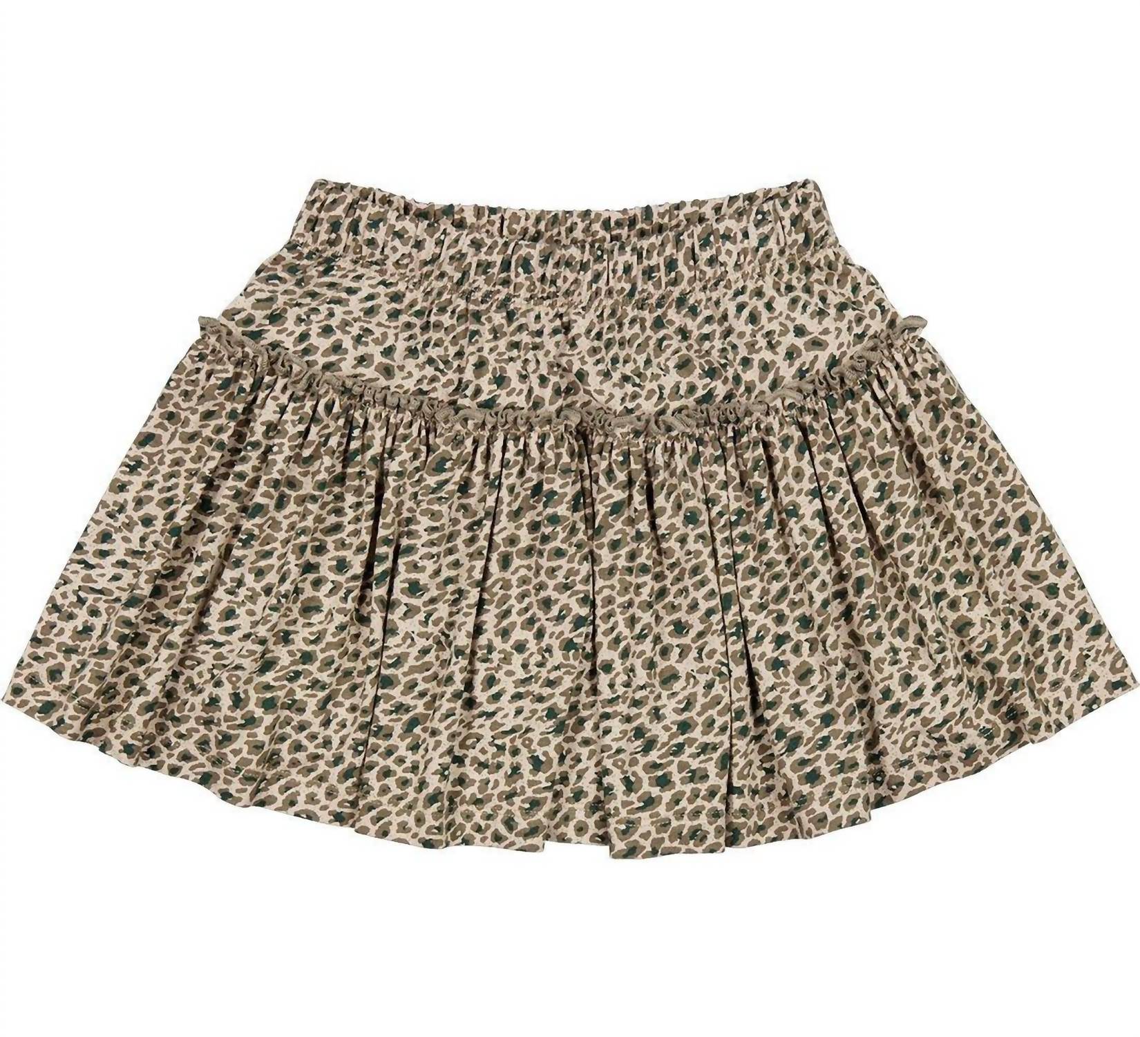 A customer favorite, and a perfect addition to your child's wardrobe. LOOK: Looks fabulous, with an elastic waist band and ruffled details that make it pop. Features a leopard print throughout the entire skirt. FABRIC: Fabric is soft, durable, and comfy.  FIT: Skirt fits normal, goes slightly above the knees depending on height. STYLE/OCCASION: Can be worn in different occasions. Play dates, casual settings, and more. GARMENT CARE: Machine wash 40°C extra gentle - Wash with similar colours - Wash inside out - Do not bleach - Do not tumble dry - Warm iron - Do not dry clean FABRIC CONTENT: 93% Viscose 7% Elasthane. Standard 100 by OEKO-TEX® certified COLOR:  Comes in Purple and Donkey color