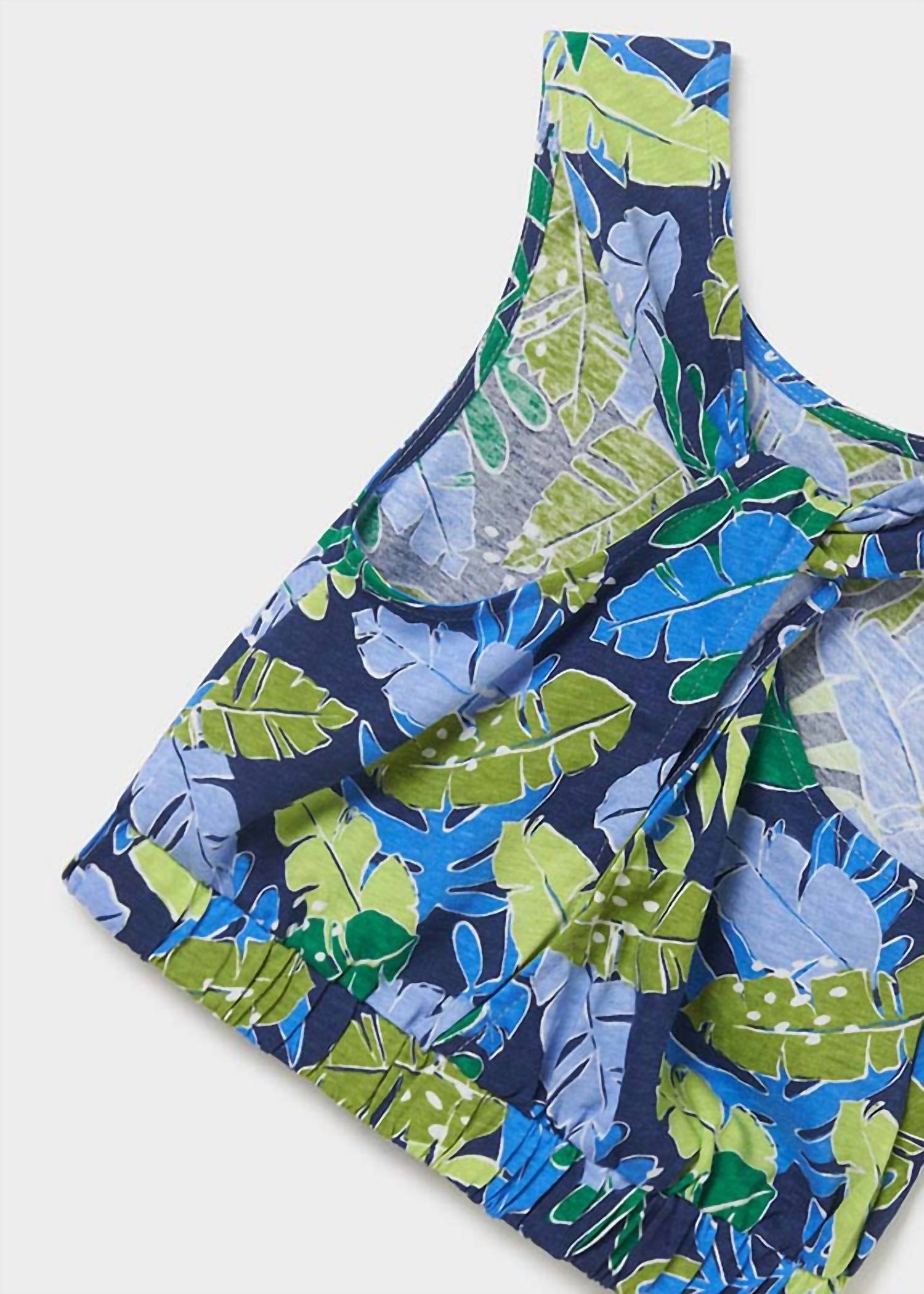 Introducing the Girls' Keyhole Tropical Tank by Mayoral, a perfect choice for summer vacations. This blue tank top features a stylish patterned design with an opening on the back, complemented by elasticated bottom cuffs for a snug fit. Ideal for girls who love vibrant, maximalist trends, this tank embodies a fun, tropical vibe perfect for Easter celebrations. Care: Machine wash and tumble dry for easy maintenance.