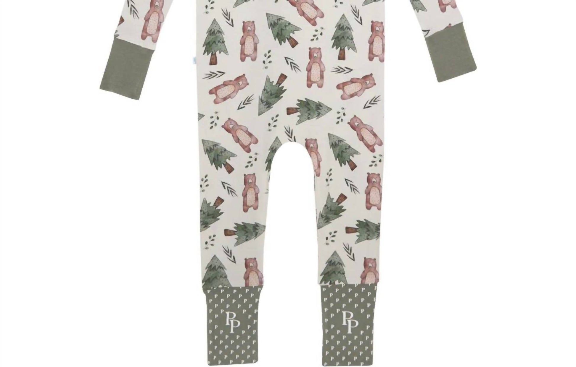 Delightful and versatile one-piece perfect for winter getaways. Crafted in a charming bear print beige. Made from 95% Viscose from Bamboo and 5% Spandex, ensuring softness ideal for sensitive skin. Features a two-way zipper, convertible mittens for newborn to 3 months, and footies with designer grips. Care is simple: wash inside out on a cold gentle cycle with like colors, lay flat to dry, or tumble dry on low with a cool iron if needed.
