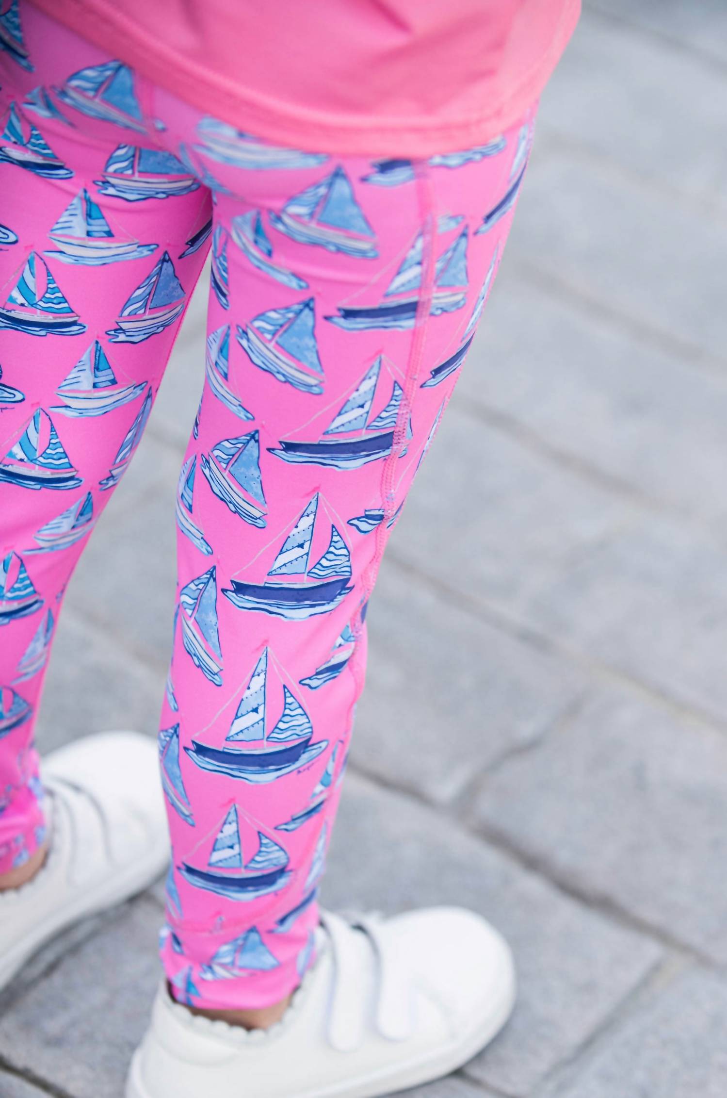 Meet the PRODOH Cosmos Sailboat Legging, a perfect blend of style and functionality designed for adventurous girls. These leggings feature a playful sailboat print in vibrant pink, crafted from UPF 50+ four-way stretch jersey with 85% polyester and 15% spandex, ensuring both comfort and protection. Designed with practicality in mind, they include two side drop-in pockets and the signature "Get Back Here Loop" for added convenience. Machine washable and equipped to handle tumbles, they are an ideal choice for camping and other outdoor activities.