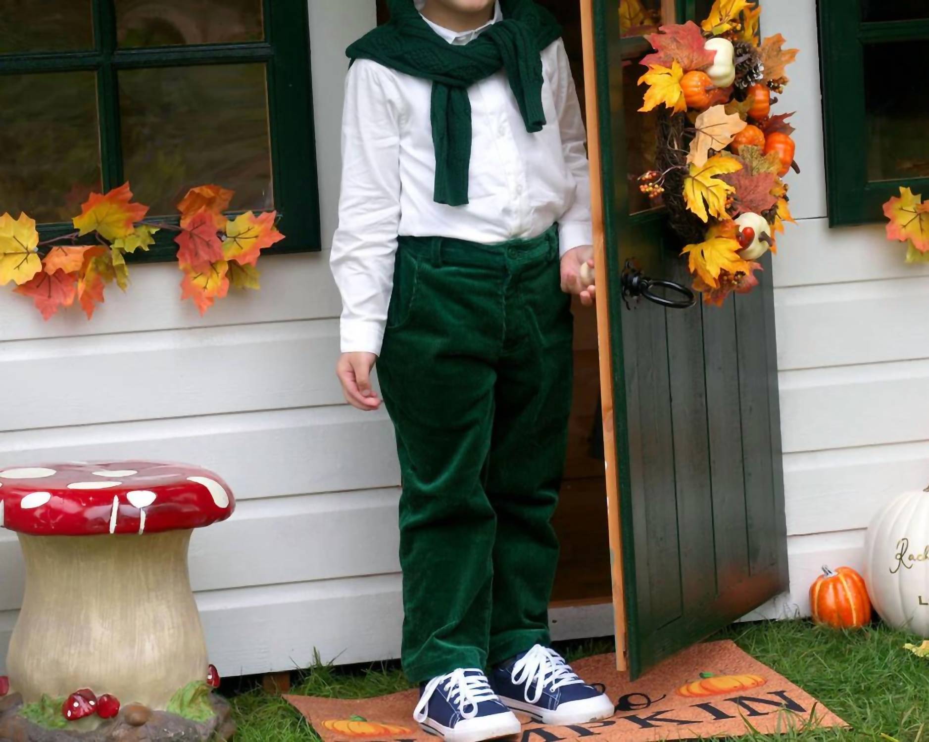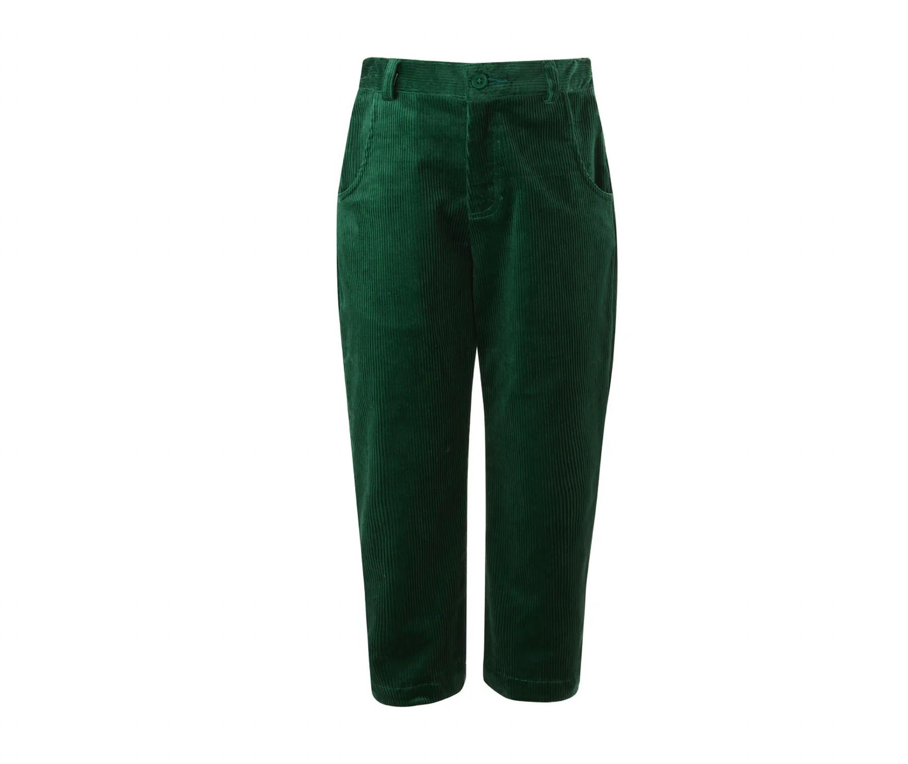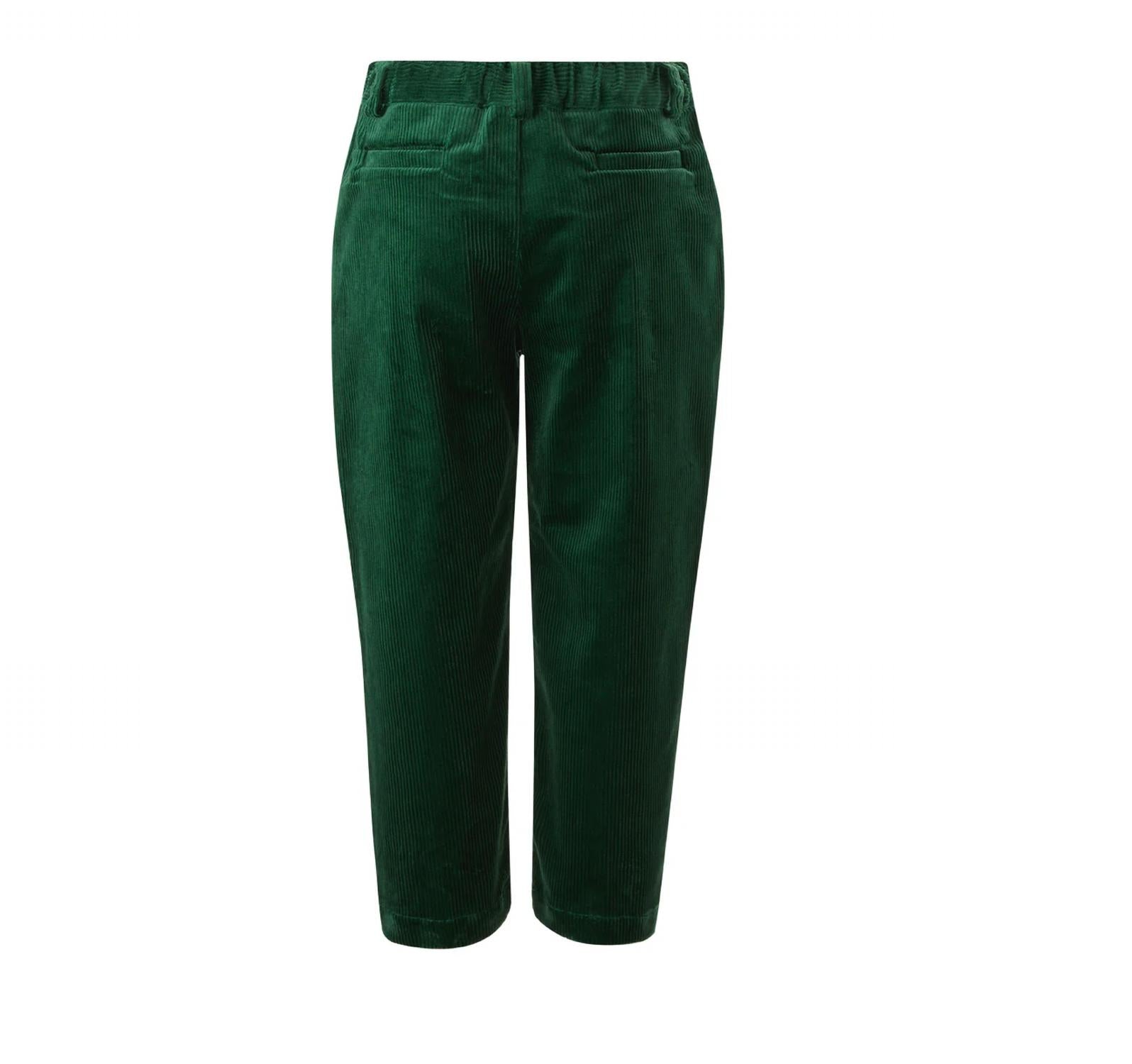 Elevate your little one's holiday wardrobe with the Cord Trousers by Rachel Riley in a rich dark emerald green. These textured trousers boast curved slash pockets at the front and welt pockets at the back for added convenience. The elasticated waist ensures a snug and comfortable fit, ideal for pairing with festive shirts or polos for an impeccably preppy Christmas look. Perfect for holiday parties and capturing the festive spirit.