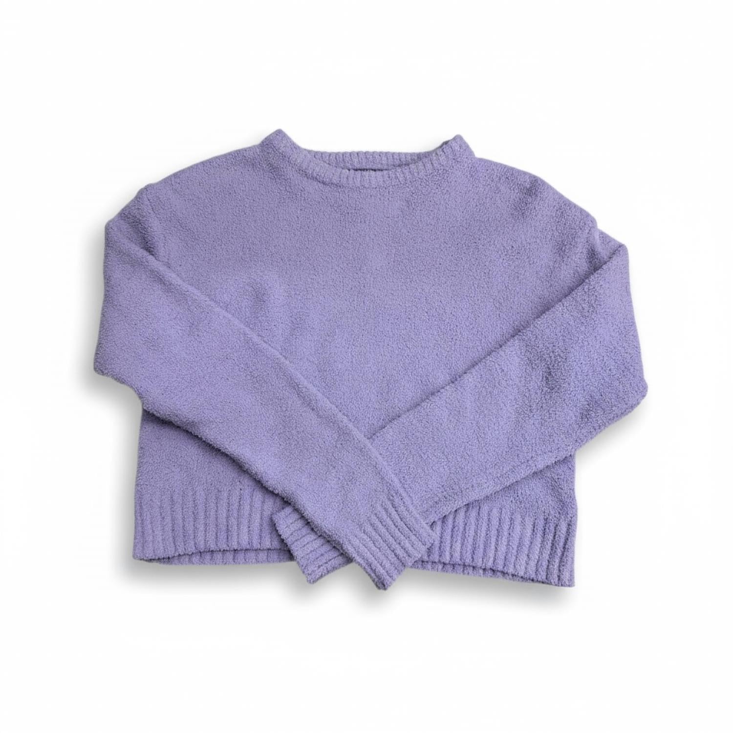 Introducing the Girls' Cozy Crew Sweater by Flowers by Zoe, a chic addition to any young fashionista's wardrobe. This sweater is crafted in a ribbed lilac hue, featuring a classic crewneck design that is both cozy and stylish. Care instructions recommend hand washing and laying flat to dry to maintain its vibrant color and quality.