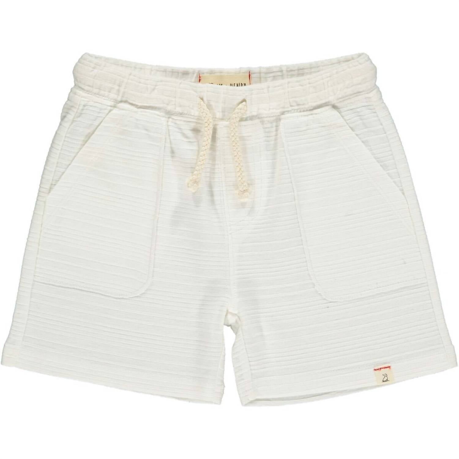 Elastic waistband with drawstring. Side pockets. Ribbed texturing and slight stretch. 95% Cotton, 5% Spandex.