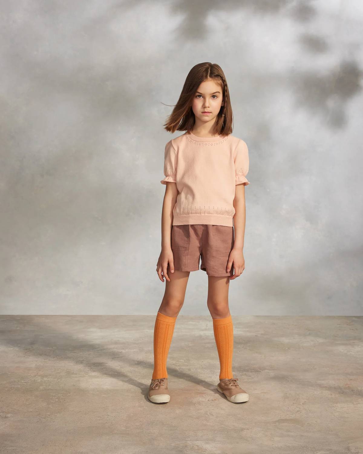 Introducing the Kids On The Road Linen Shorts by The Sunday Collective, crafted with a durable and comfortable blend of 55% linen and 45% cotton. These solid shorts are designed for versatility, perfect for playdates or a casual dinner. Made in Portugal with front pockets and center seam detailing. Machine washable with warm water, can be tumble dried on low, and warm iron if needed.