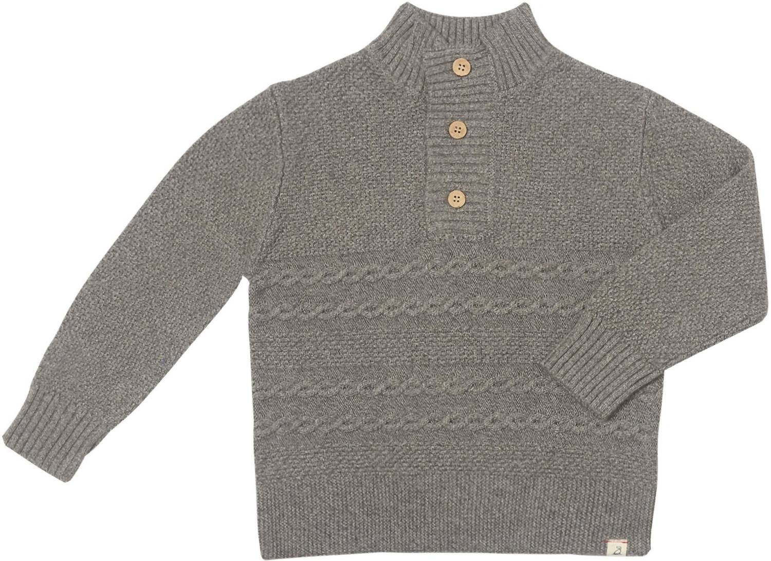 Discover the Cable Sweater by ME & HENRY, a stylish choice for boys this fall. Designed in a textured grey cable knit, this sweater boasts a half button detail, adding a unique twist to a classic piece. Made from 100% cotton, it ensures comfort and breathability. Ideal for travel or Thanksgiving gatherings, its minimalist design makes it a versatile wardrobe addition.