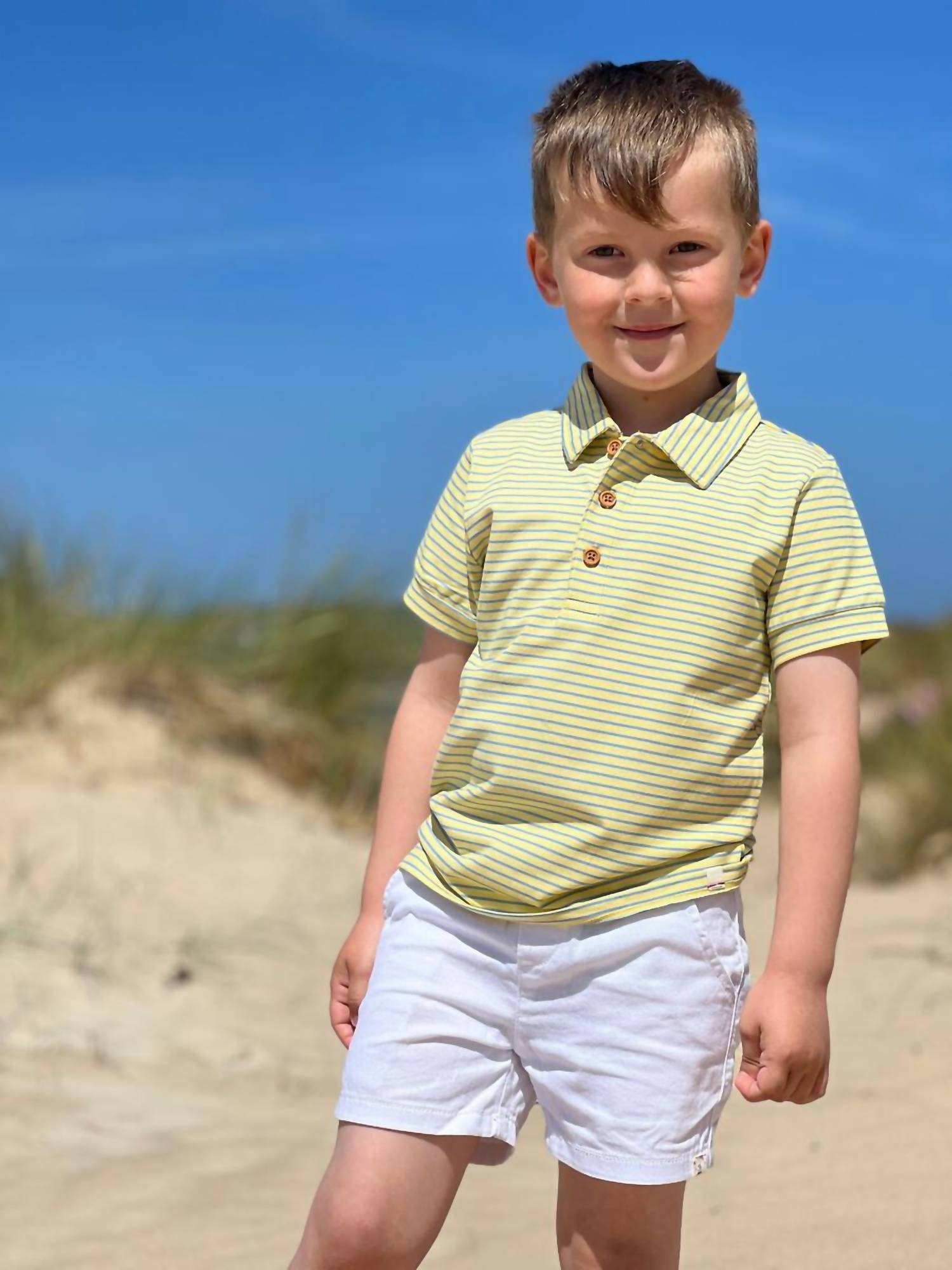 95% Cotton, 5% Spandex. These polos offer a classic design with fun twists that your boys will love. Short sleeves. Buttoned closure neck with collar. Striped.