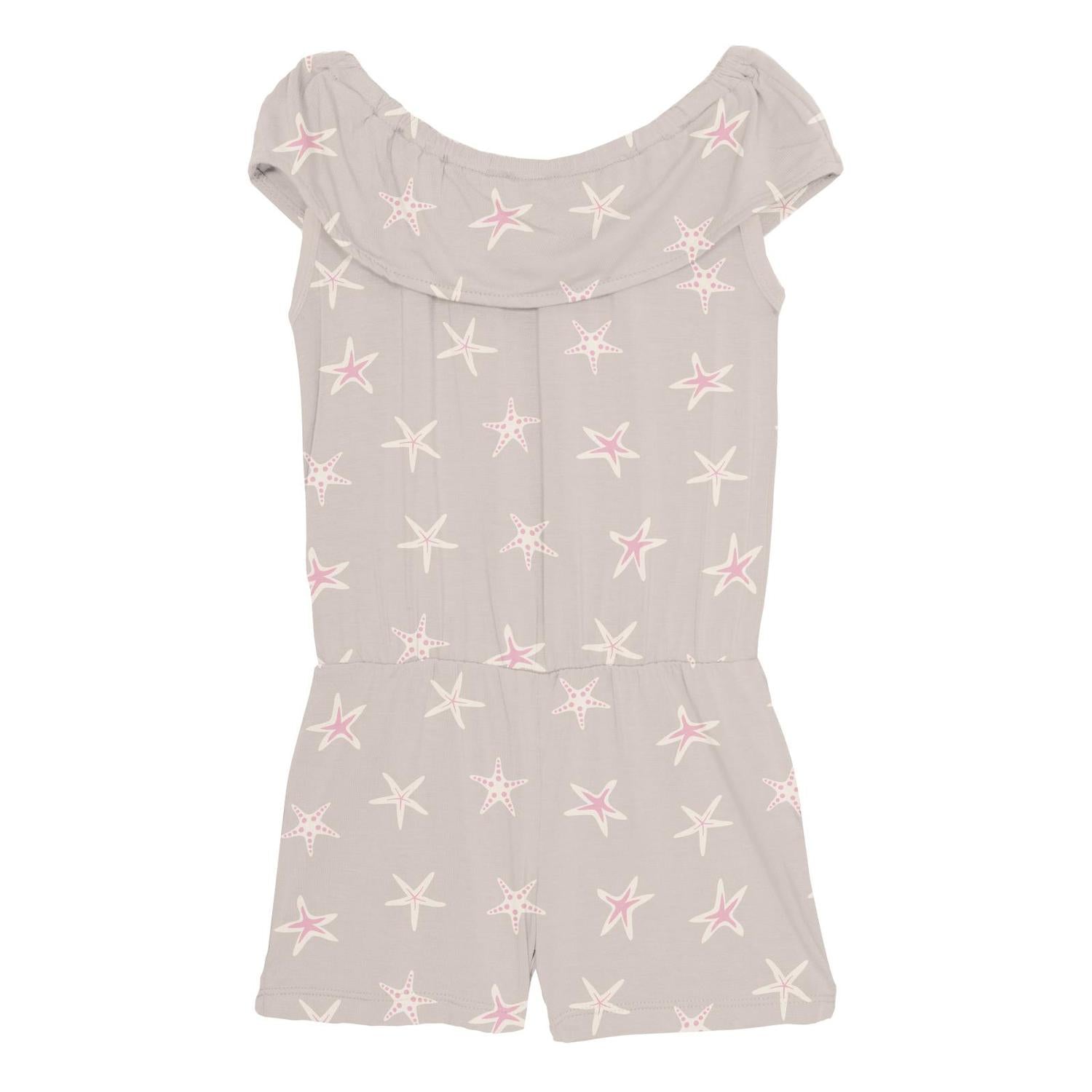 Elevate her summer wardrobe with the Girl's Summer Romper Latte Starfish by KICKEE, designed for style and comfort during any fiesta. This one-piece features a peasant-style collar and relaxed fit for easy movement. Crafted from KICKEE's buttery-soft signature fabric, it's composed of 95% viscose from bamboo and 5% spandex, offering breathability and stretch with a lightweight feel. Care is simple with machine wash inside out on a gentle cycle and tumble dry on low.