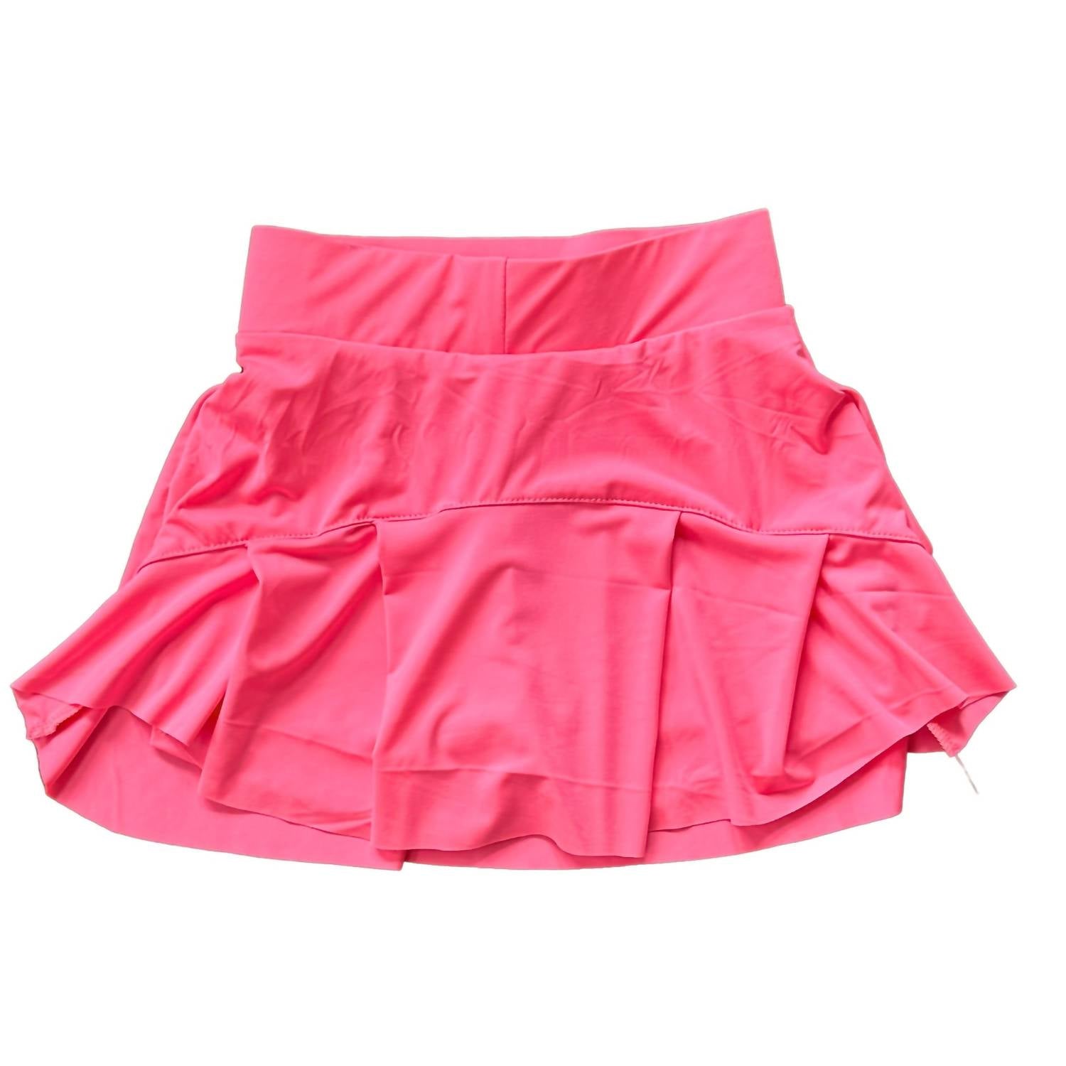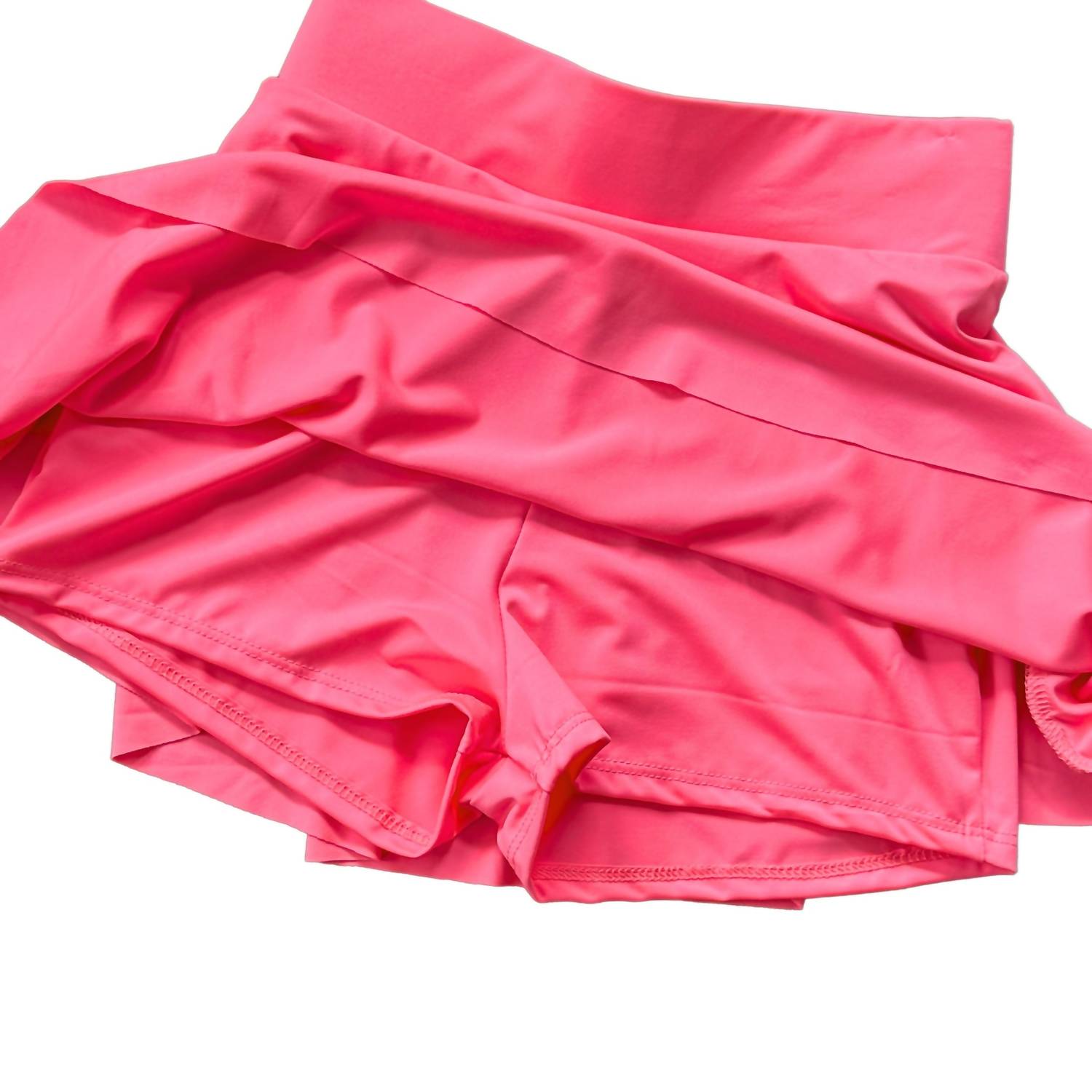 Discover the vibrant Neon Pink Girls Tennis Skort by Erge Designs, where functionality meets style. Crafted from a blend of 95% rayon and 5% spandex, this skort features built-in shorts and wider pleats at the back for a playful finish. The thick, smooth waistband with a drop-yoke seam enhances comfort and fit. Care for this skort effortlessly with machine wash instructions.