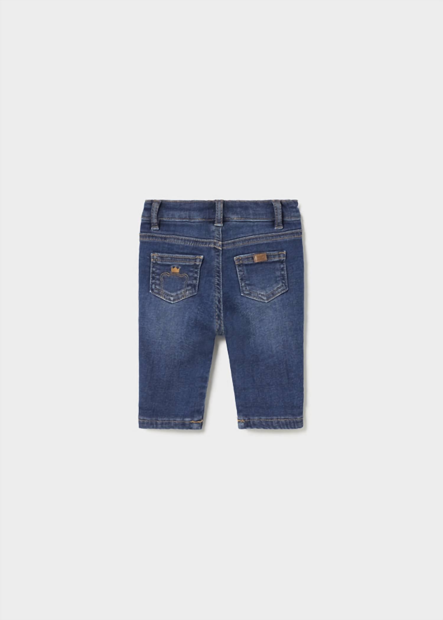 Introducing the Kids' Cotton Lined Jean by Mayoral, designed for cozy comfort and style. In a dark wash, these jeans are crafted from 100% Cotton, featuring a solid pattern with a mid-rise waist and regular fit. The straight leg and cuffed bottom add a classic touch, complete with tan stitching and functional pockets. Closure: Zip closure. Care: Machine wash and tumble dry. Perfect for a holiday party or spring occasion.