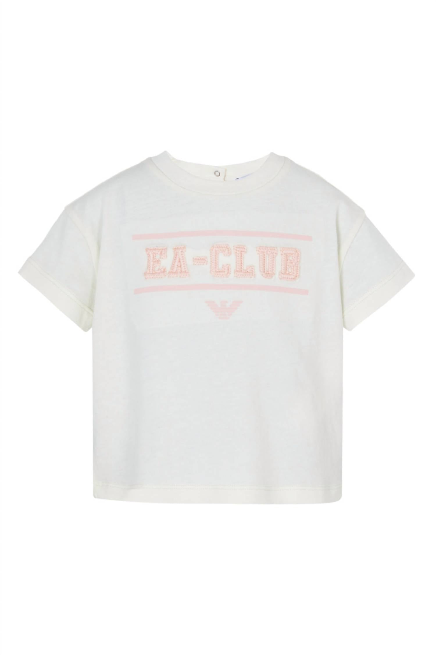 Wrap your little one in comfort with the Baby Girl Logo-embroidered T-shirt by ARMANI. This stylish tee features short sleeves and is made from soft, breathable cotton ideal for summer wear. The charming graphic pattern adds a preppy touch, perfect for your baby's casual outings. Care is simple with machine wash instructions, ensuring easy maintenance.