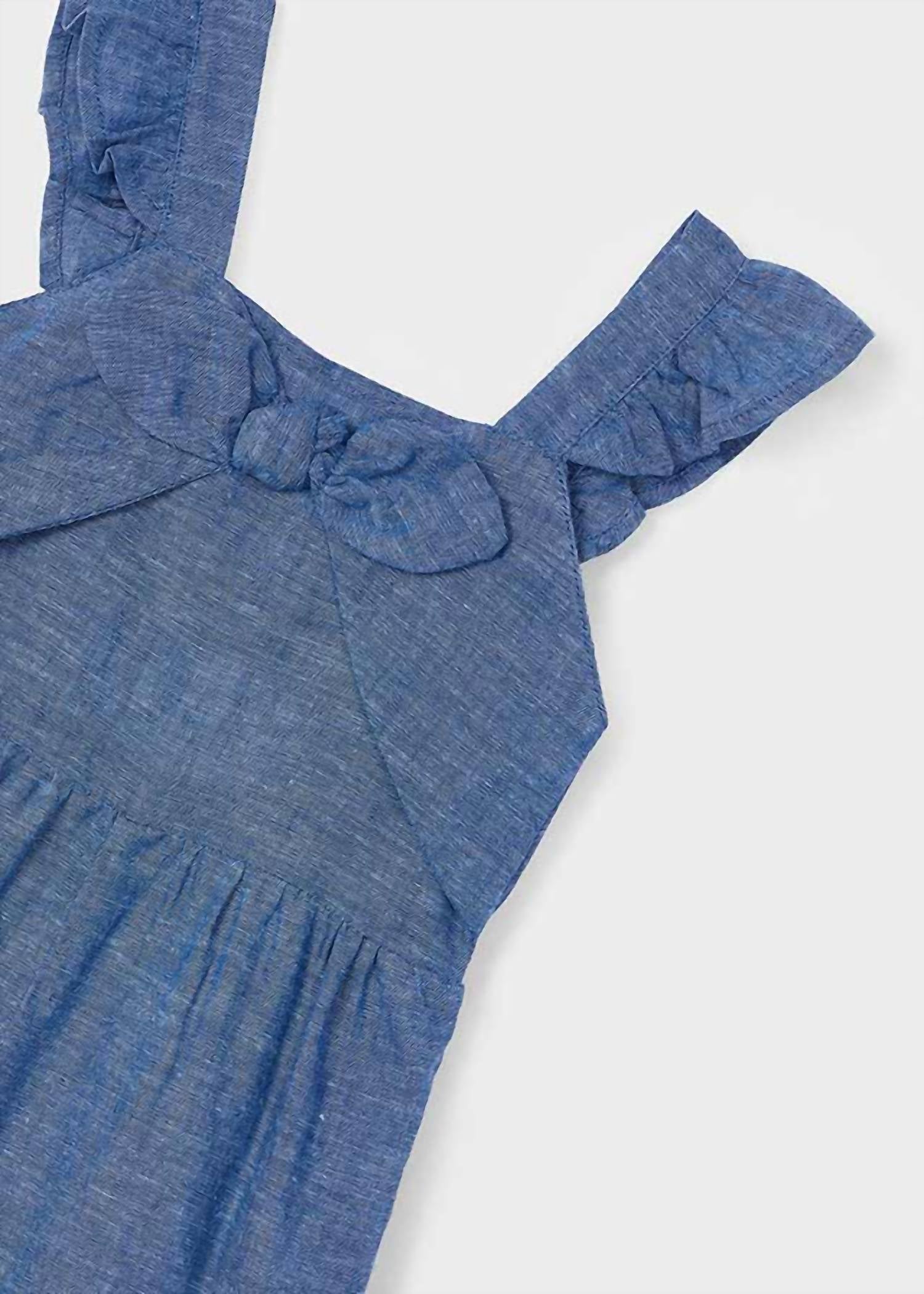 Meet the Girls Linen Romper by Mayoral, a minimalist piece perfect for summer vacations. Crafted from a breathable linen blend, this romper is composed of 55% linen and 45% cotton, featuring a solid blue hue ideal for any occasion. Designed specifically for girls, this versatile romper provides both comfort and style. Care for it with ease by machine washing.