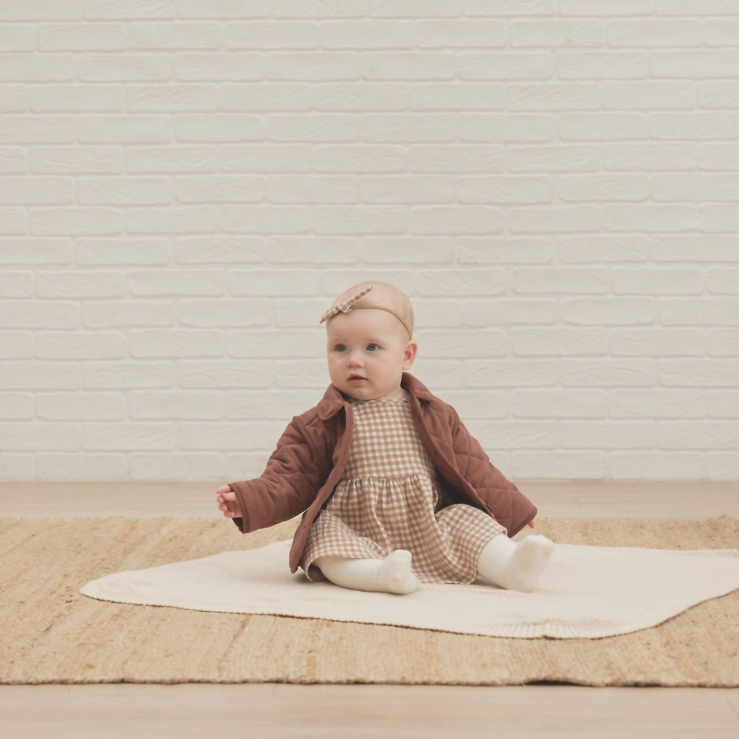 Wrap your little one in comfort and style with the Baby Quilted Jacket by Quincy Mae, featuring a soft pecan hue perfect for a vintage-inspired spring look. This solid-patterned pea coat boasts a button-up front and is crafted from 100% certified organic cotton, ensuring both warmth and eco-friendliness. Care for this timeless piece is easy with machine wash and low tumble dry settings, though minor shrinkage may occur when tumble dried. Ideal for young girls, this jacket blends classic charm with modern practicality.