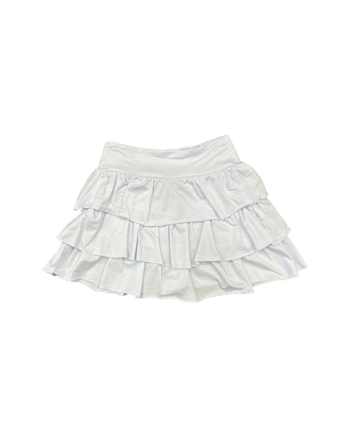 Introducing the Girls Ruffle Skirt by Flowers by Zoe, a charming addition to any wardrobe with its elegant layered design. This solid white skirt offers a minimalist yet sophisticated look, perfect for summer days and stylish outings. Combining playful femininity with versatile appeal, it effortlessly complements a variety of ensembles. For lasting freshness, simply hand wash to maintain its pristine condition.