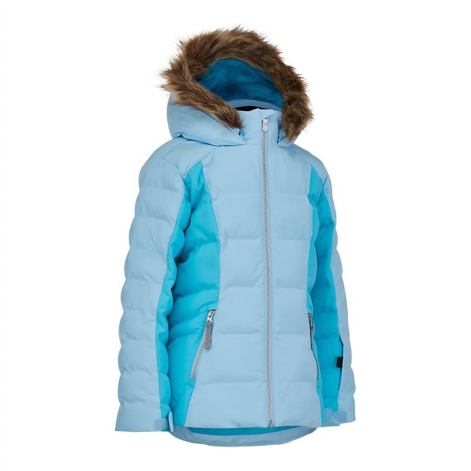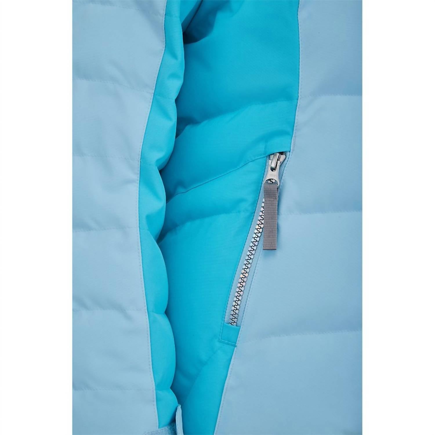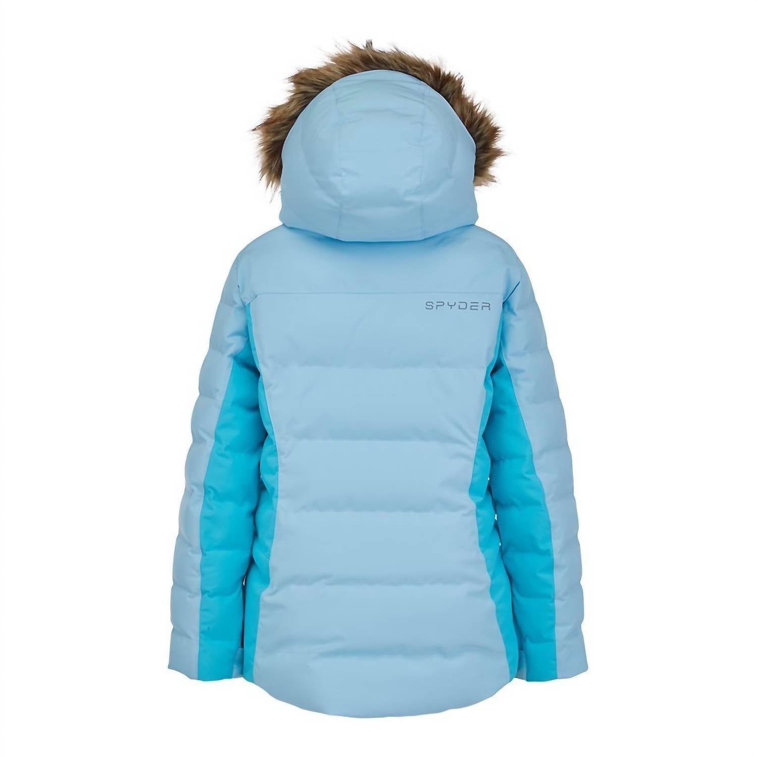 COMBINING SYNTHETIC DOWN INSULATION WITH RECYCLED REPREVE® POLYESTER OUTER, THE ATLAS IS OPTIMIZED TO KEEP GIRLS WARM AND DRY WHEN MOUNTAIN WEATHER MOVES IN AND TEMPERATURES DROP.A 10K/10K LAMINATE WITH ADDITIONAL DWR CREATES WEATHERPROOF PROTECTION AND SYNTHETIC DOWN TRAPS WARMTH. A REMOVABLE HOOD WITH DETACHABLE FAUX FUR AND HOLOGRAM VISLON® ZIPPERS ARE THE SPYDER EXTRAS THAT WILL POP ON THE PODIUM.STRETCH RECYCLED REPREVE® POLYESTER PLAIN WEAVE WITH 10K/10K LAMINATE AND DWRSYNTHETIC DOWN INSULATIONYKK ZIPPERSFIXED HELMET COMPATIBLE HOOD WITH INNER HOOD GAITER AND DETACHABLE FAUX FUR TRIMCRITICALLY SEAM TAPEDYKK SHINY HOLOGRAM VISLON® CENTER FRONT AND HAND POCKET ZIPPERSFIXED POWDER SKIRT WITH SNAPS AND GRIPPER ELASTICDATA CARD,INTERNAL AND MESH GOGGLE POCKETADJUSTABLE CUFF TABS WITH GUSSETS AND INTERIOR STRETCH CUFFS WITH THUMB HOLESDRAWCORD ADJUSTABLE HEMCB LENGTH: SIZE 10 : 24.5"