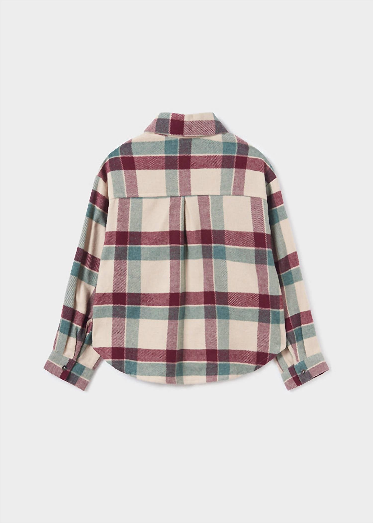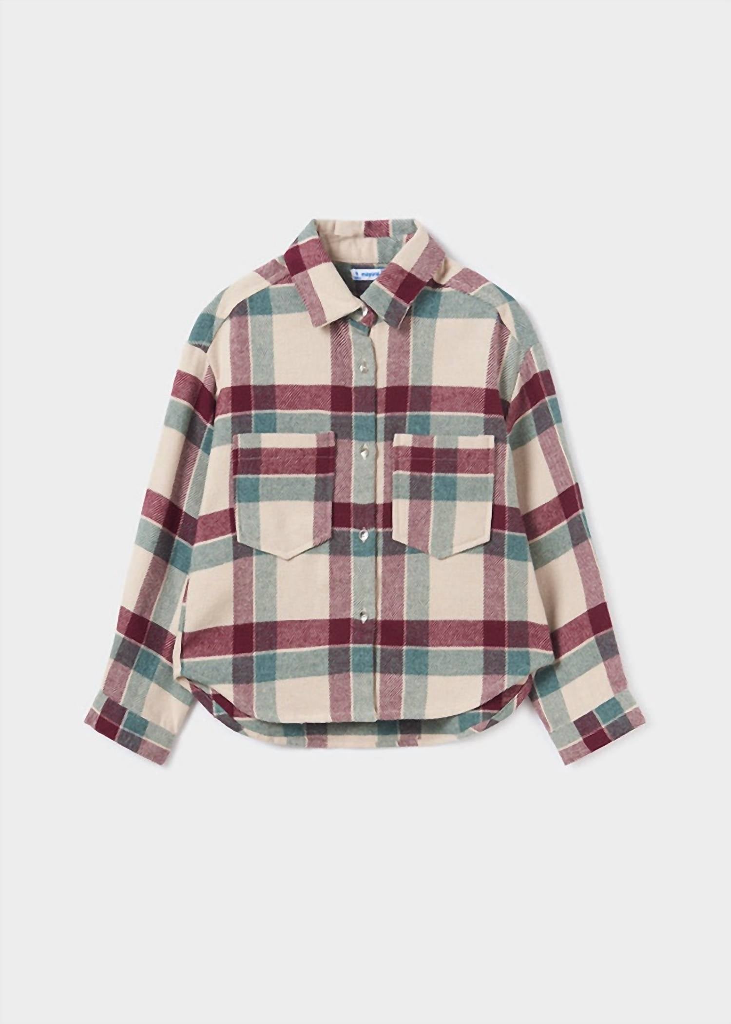 Discover the Checked Overshirt by Mayoral, an essential addition to your fall streetwear collection. Featuring long cuffed sleeves, this piece is crafted from a cotton blend with 60% cotton and 40% polyester for a soft, brushed finish. The elegant eggplant and evergreen plaid pattern is highlighted by shiny rose gold button closure, accentuating its collared neckline and oversized patch pocket detail. Care for this stylish overshirt is simple with machine wash cold instructions, hang dry, and a cool iron for maintenance.