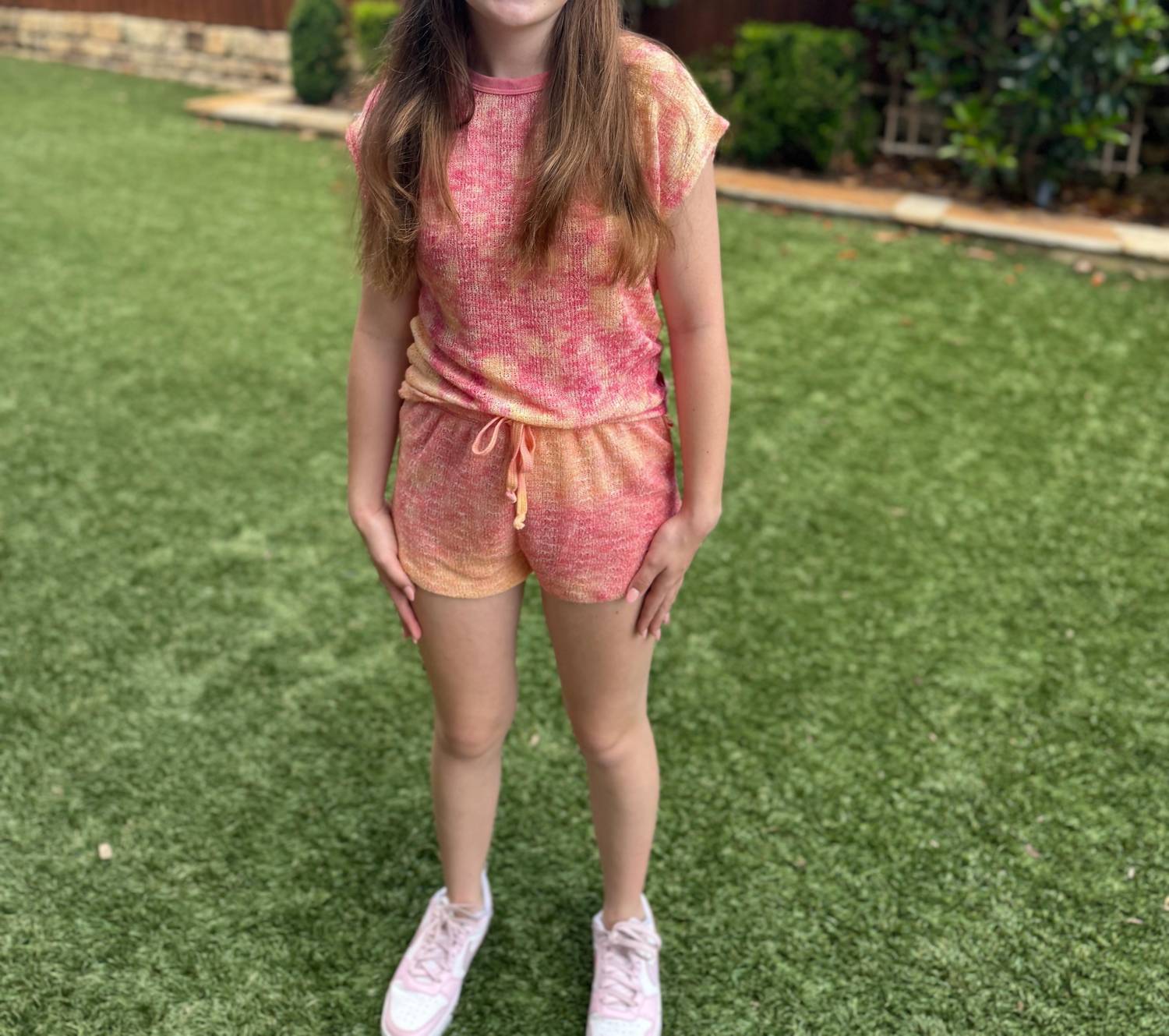 Vibrant shorts feature a unique tie-dye pattern in purple and yellow. Crafted from a comfortable blend of 48% Polyester, 48% Rayon, and 4% Spandex. Designed to sit low-rise. Drawstring and elasticized waistband for a perfect fit. Proudly made in US. Machine washable for easy care.