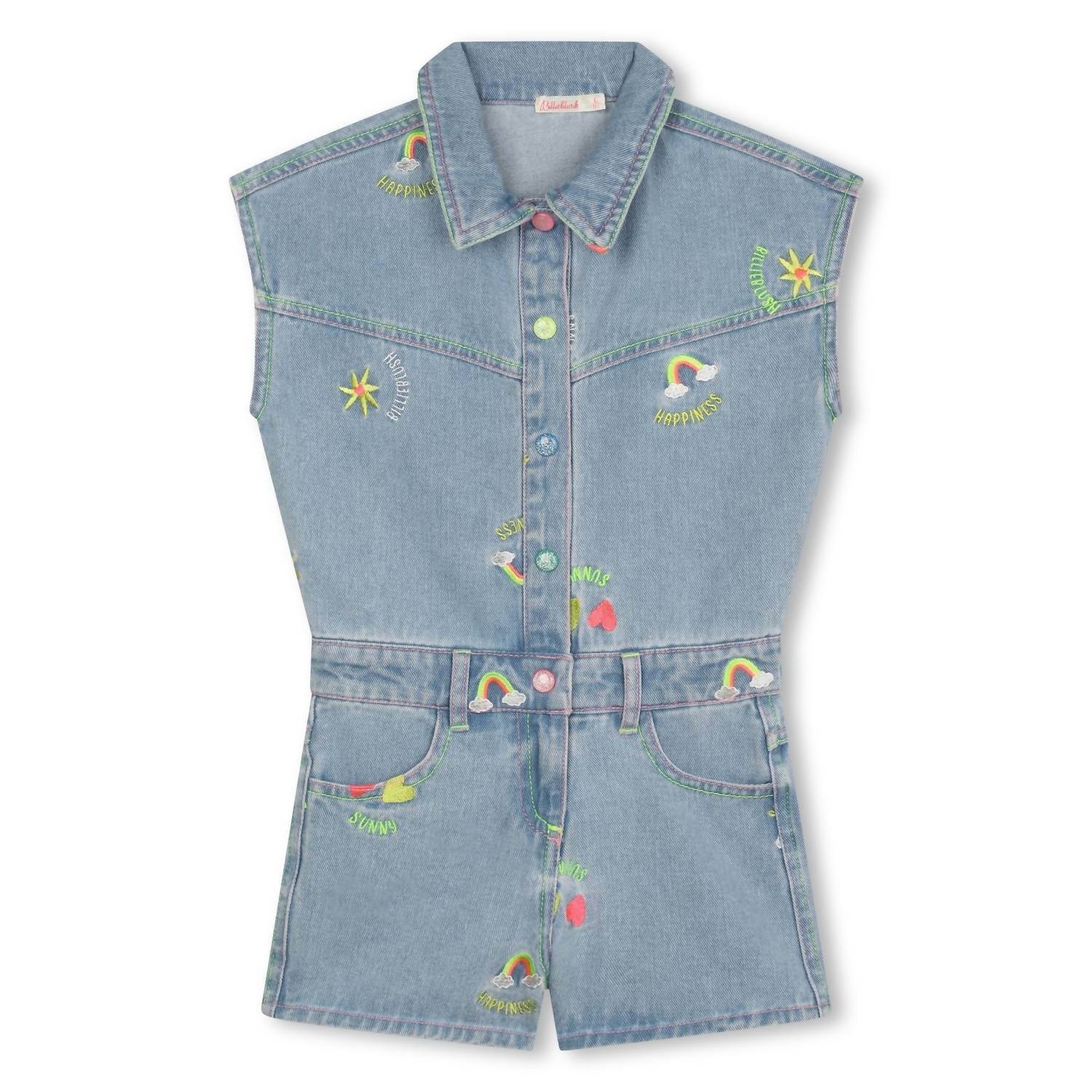 Billieblush - Girls Allover Flower Embroidery Denim Shortall