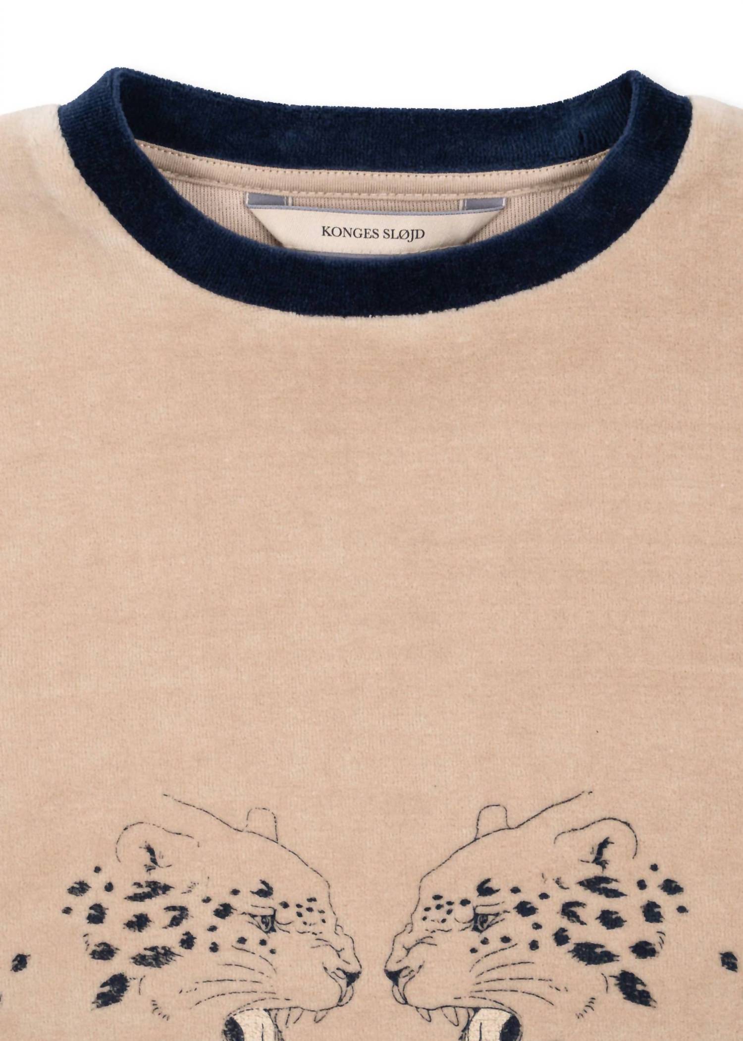 Introducing the Wally Sweatshirt by Konges Sløjd, a stylish choice for boys crafted from a soft cotton blend in a striking bicolor dress blue. This remarkable piece features a captivating front tiger print, designed in Denmark and made in China. The composition of 80% organic cotton and 20% recycled polyester ensures comfort and sustainability. With true-to-size fit, it embodies the brand's commitment to quality and functionality.