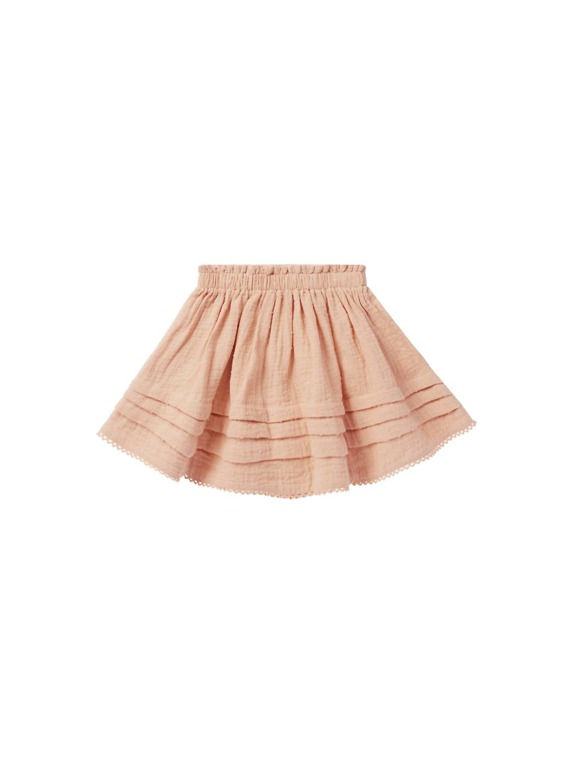 Elevate your little one's spring wardrobe with the adorable Mae Skirt by Rylee + Cru, featured in a delightful apricot hue. This charming mini skirt is designed with a paper bag ruffle waistband and pretty pleating, adding a playful, girly touch to any outfit. Crafted from 100% cotton, it’s easy to care for with a machine wash cold and tumble dry low, though minor shrinkage may occur if tumble dried. Perfect for Easter or vacation, this textured skirt ensures your girl looks sweet and stylish all season long.
