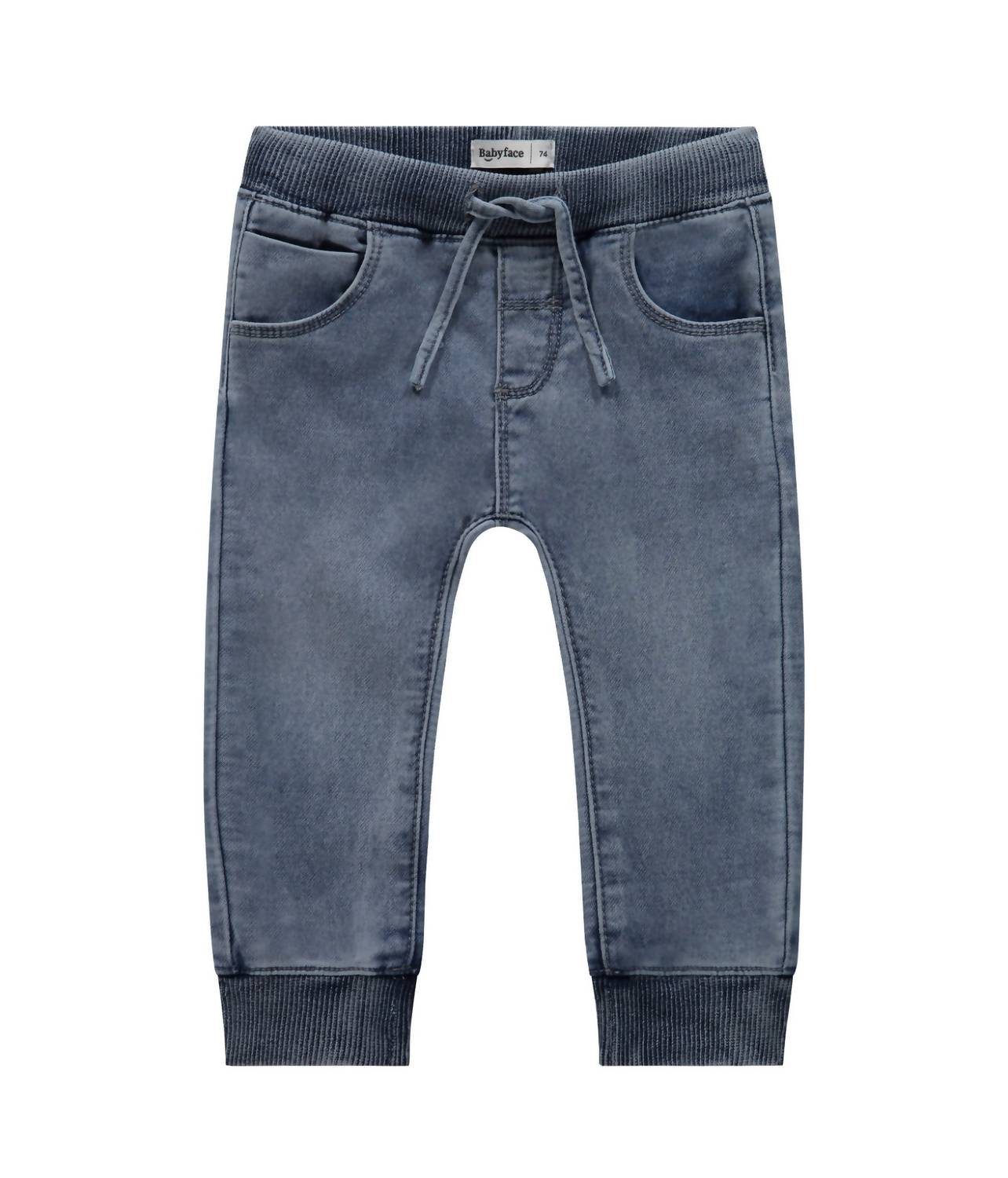 Introducing the Baby Boy's Jogg Denim Pant by Babyface, perfect for your little one's wardrobe in a delightful Mid Blue shade. These jeans are crafted from a super soft cotton blend, consisting of 78% Cotton, 21% Polyester, and 1% Elastane, providing comfort and ease. With an elastic waistband and ankles, these solid-patterned pants are easy to pull on, making them ideal for any Spring occasion, including holiday parties. Care instructions are not specified, ensuring focus on the playful, preppy trend.