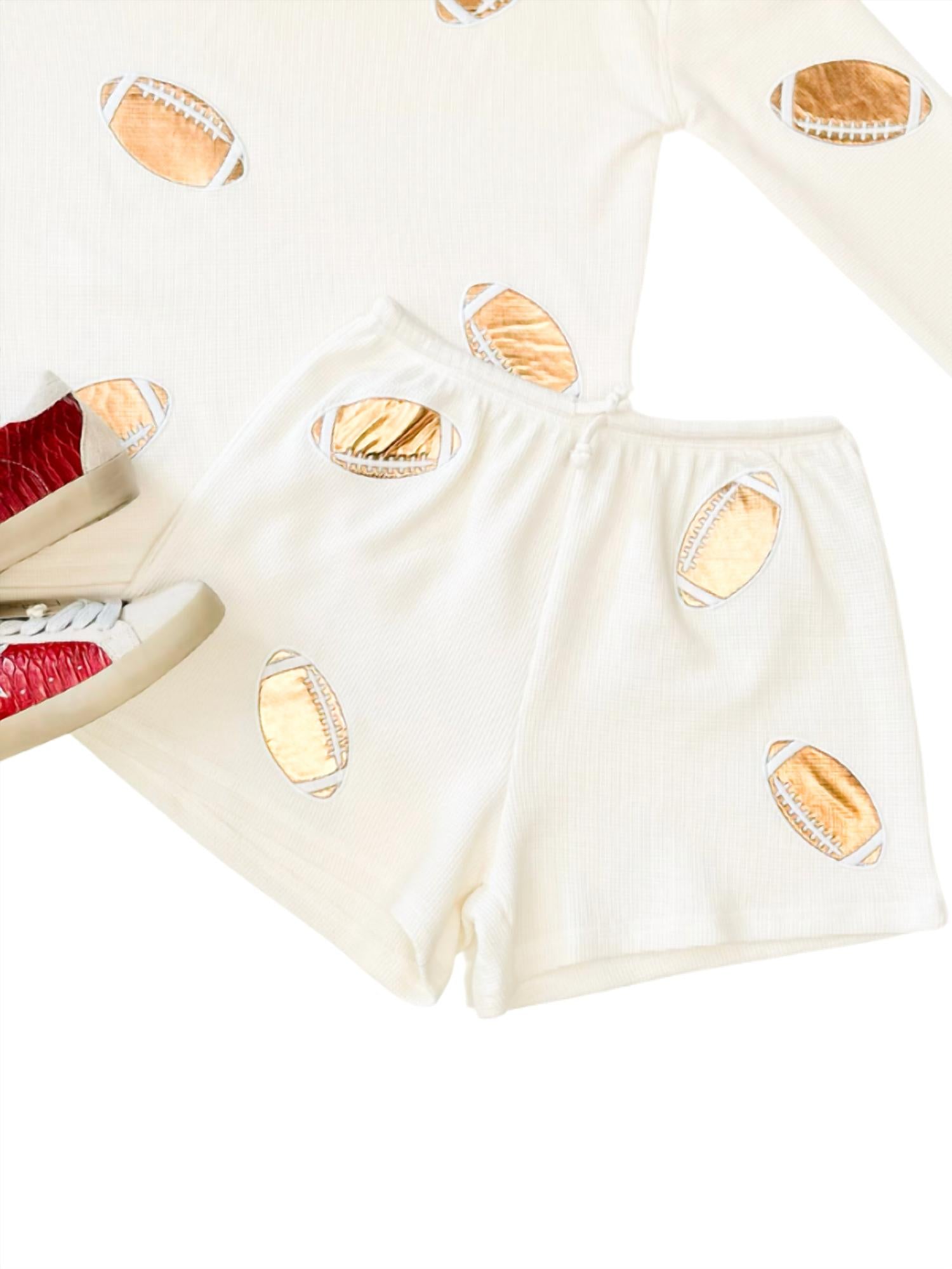 Get ready for game day with the Girl's Waffle Applique Short by Paper Flower, perfect for pairing with a school shirt or the matching Waffle Football top. Made from a comfortable knit material, these shorts feature a fun graphic pattern that's ideal for any spring athleisure look. Care: Machine wash.