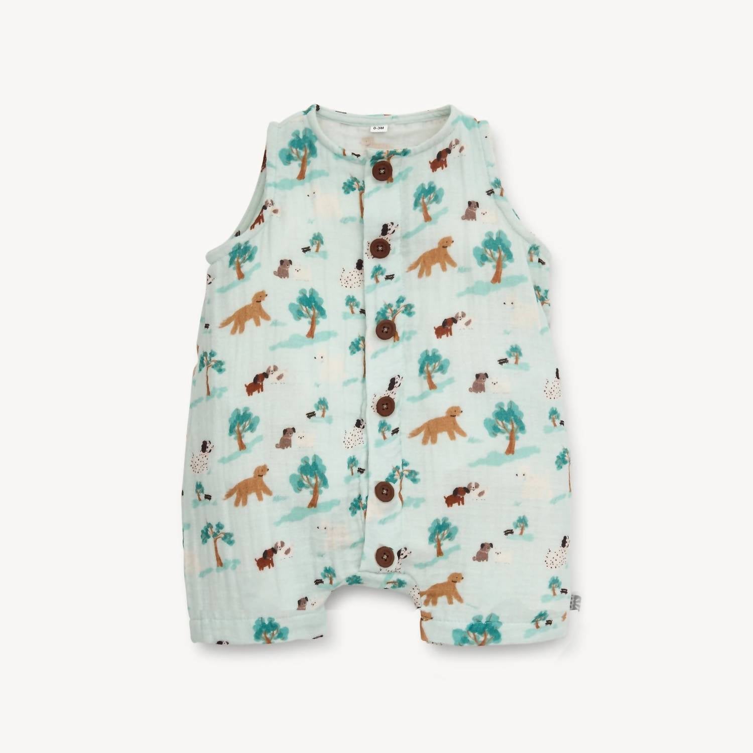 Introducing the Kids' Sleeveless Cotton Coverall by Magnetic Me, perfect for keeping your little one comfy on warm days. Made from a blend of 94% TENCEL™ modal and 6% elastane, this romper offers a silky-soft touch and a roomy fit. Featuring convenient magnetic closures for easy dressing and diaper changes, plus a charming Central Bark pattern. Machine wash.