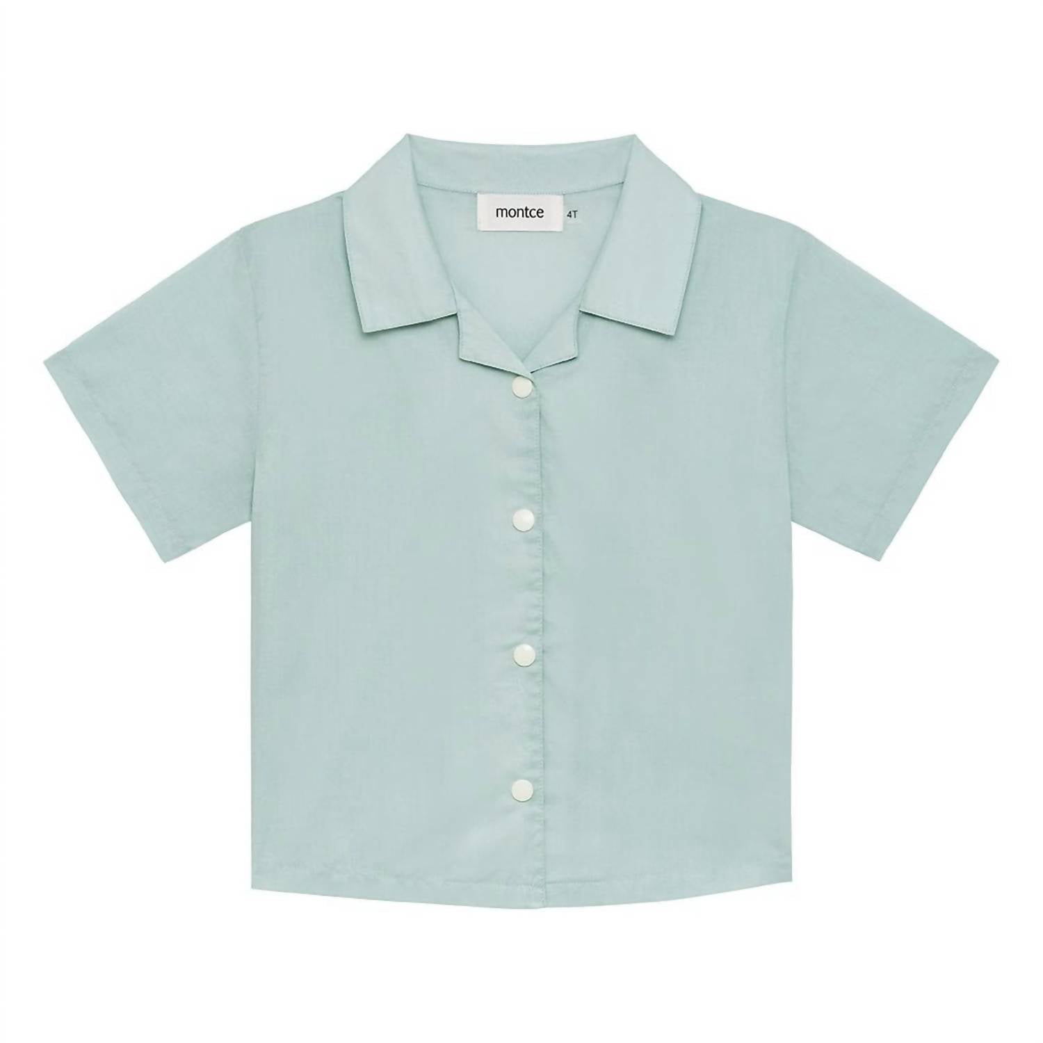Montce presents the Boy's Mini Button Down Shirt in Powder Blue, a perfect piece for a summer vacation or 4th of July celebration. Designed with a loose fit and short sleeves, this unisex shirt offers comfort and style with its center front snap closure. The shirt is OEKO-TEX Certified, providing UV Protection UPF 50+ for those sunny days. Care instructions specify hand washing, ensuring the fabric remains pristine and ready for minimalist trends.