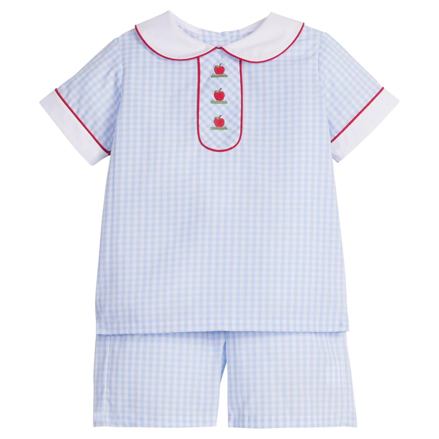 Prepare your little one for a stylish academic season with the Boy's Charlie Short Set by Little English, showcased in a charming apple print. Crafted from polyester, this set offers both comfort and durability for everyday wear. Perfect for back-to-school days or casual outings, this set combines style and practicality effortlessly.