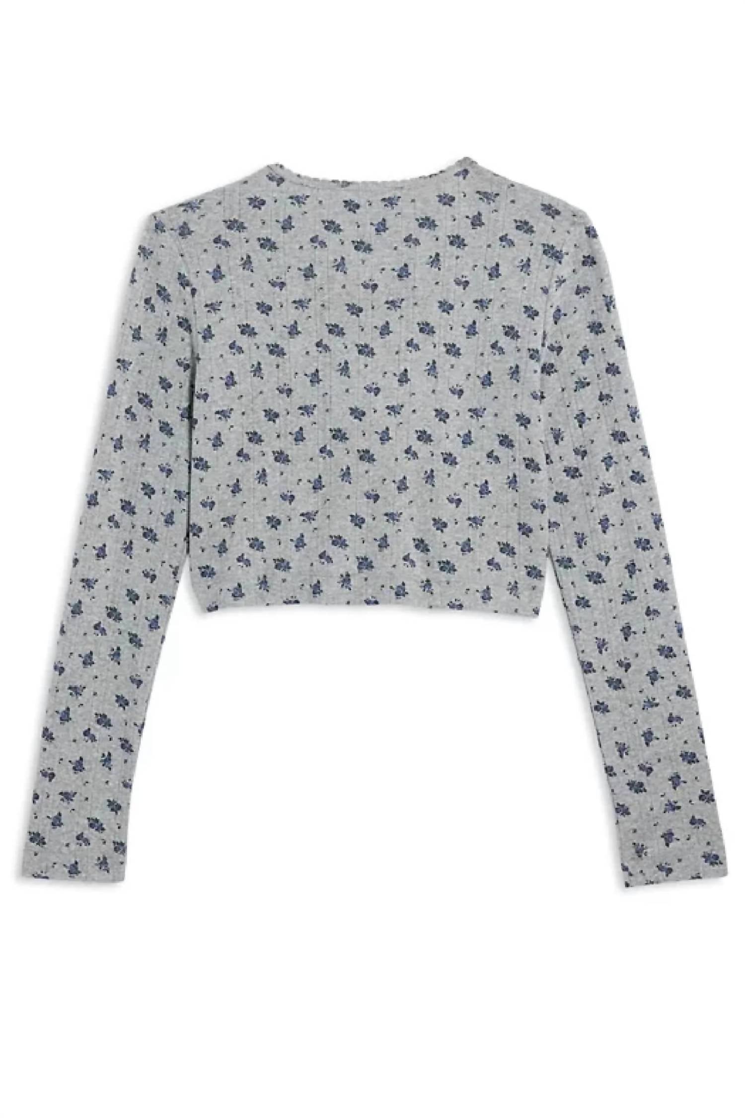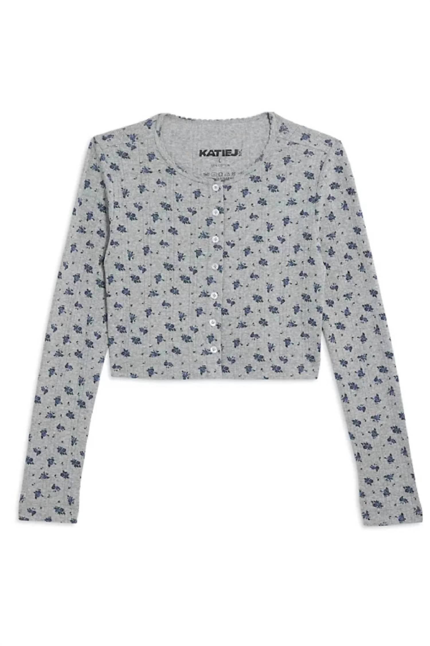 Introducing the Girls Tween Marina Cardigan by Katie J NYC, a delightful addition in Heather Grey Navy Floral that brightens up any outfit. This cardigan features long sleeves and front buttons, made entirely from soft cotton for added comfort. Care for this crewneck design by handwashing and laying it flat to dry, ensuring it stays in great condition. Perfect for a spring dinner party or casual day out, this charming patterned piece is available in sizes SM (7/8), MD (10), LG (12), and XL (14).