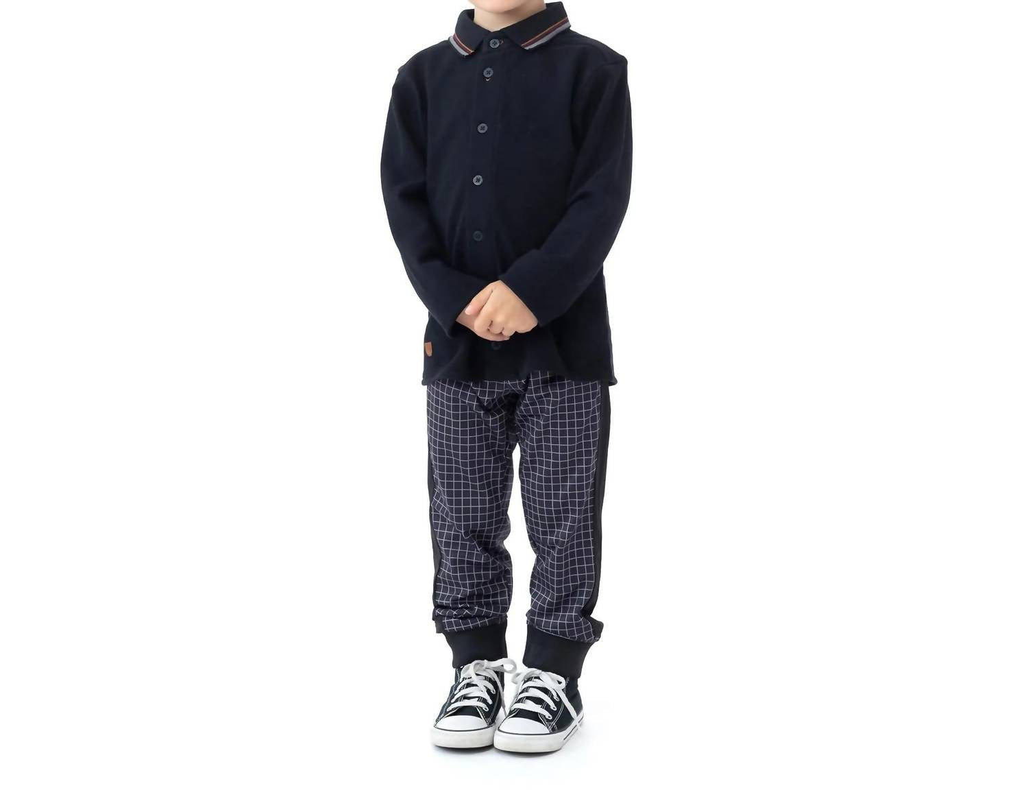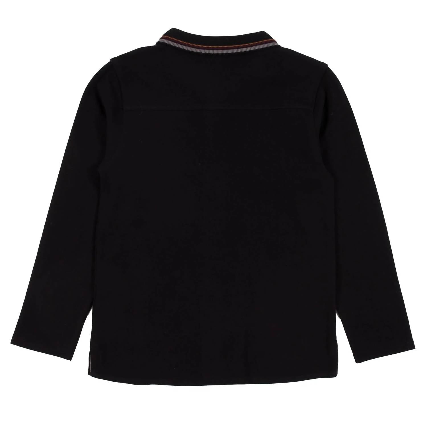 Discover the Boys' Pique Stripe Collar Shirt by Noruk Collection, a stylish fusion of polo and dress shirt elements. This solid black shirt features full-length sleeves, crafted from classic pique material for comfort and style. Composition: 100% Cotton. Closure: Button down placket with tab slit detail on the side seams. Care Instructions: Machine wash inside out in cold water, tumble dry low, and iron inside out. Perfect for a monochrome vacation look.