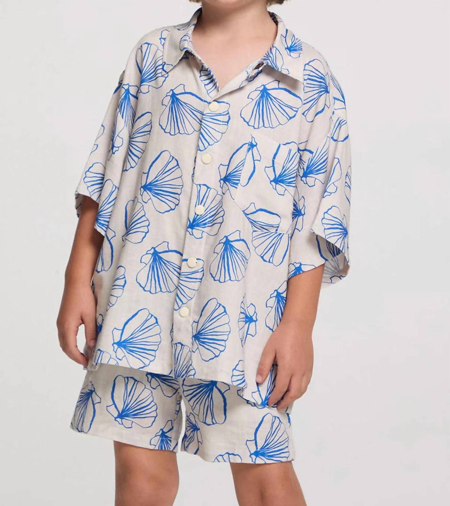 The Saltwater Luxe Ryker Top is a delightful addition to your boy's summer wardrobe, showcasing a playful Art Deco scallop print in a refreshing Ocean hue. Crafted from a breathable and lightweight linen blend, composed of 70% Rayon and 30% Linen, it ensures comfort for beach days and casual outings. This garment is designed for holiday parties with its Boho Chic appeal, and it pairs effortlessly with matching shorts. Care is simple with machine wash instructions, making it perfect for regular summer adventures.