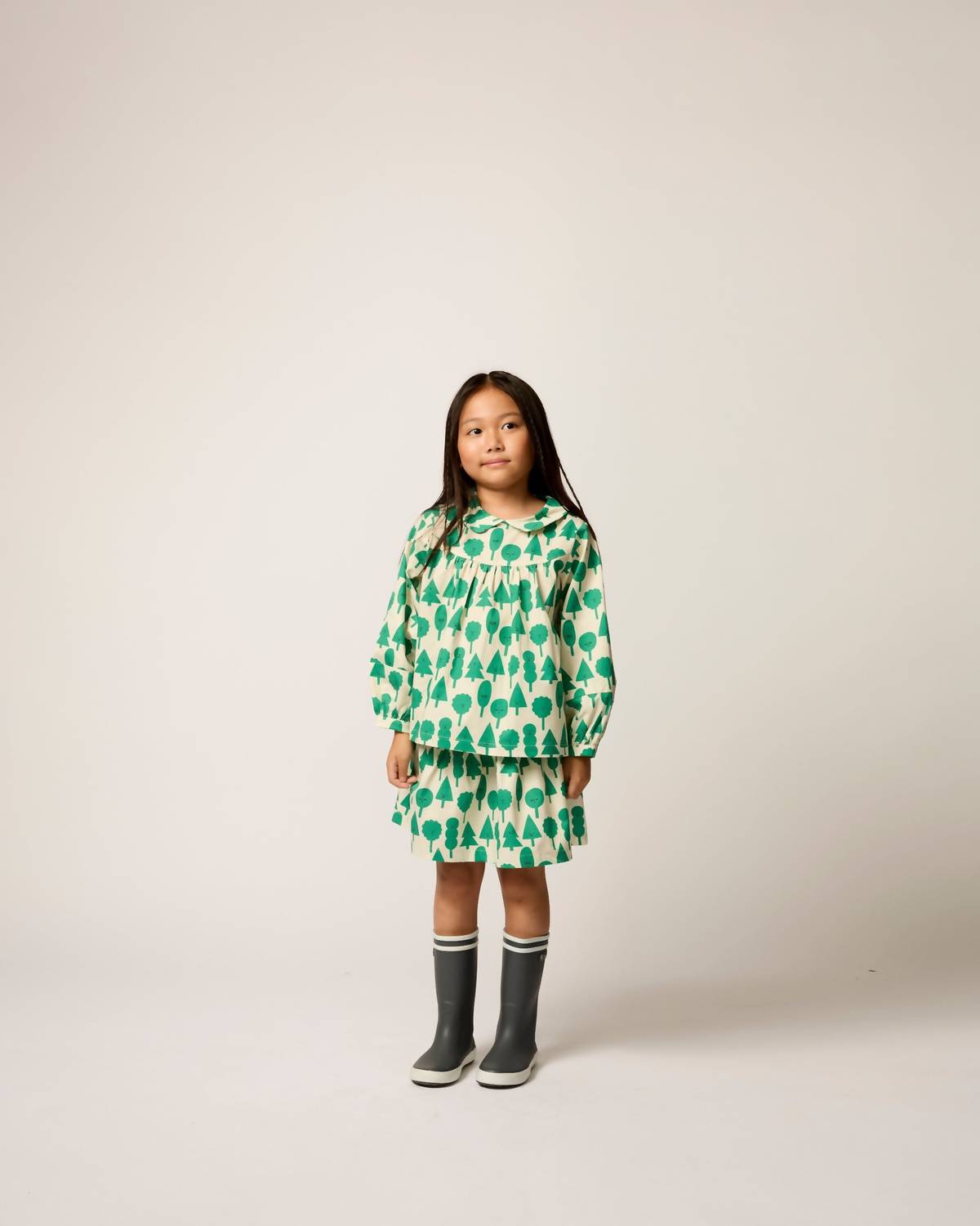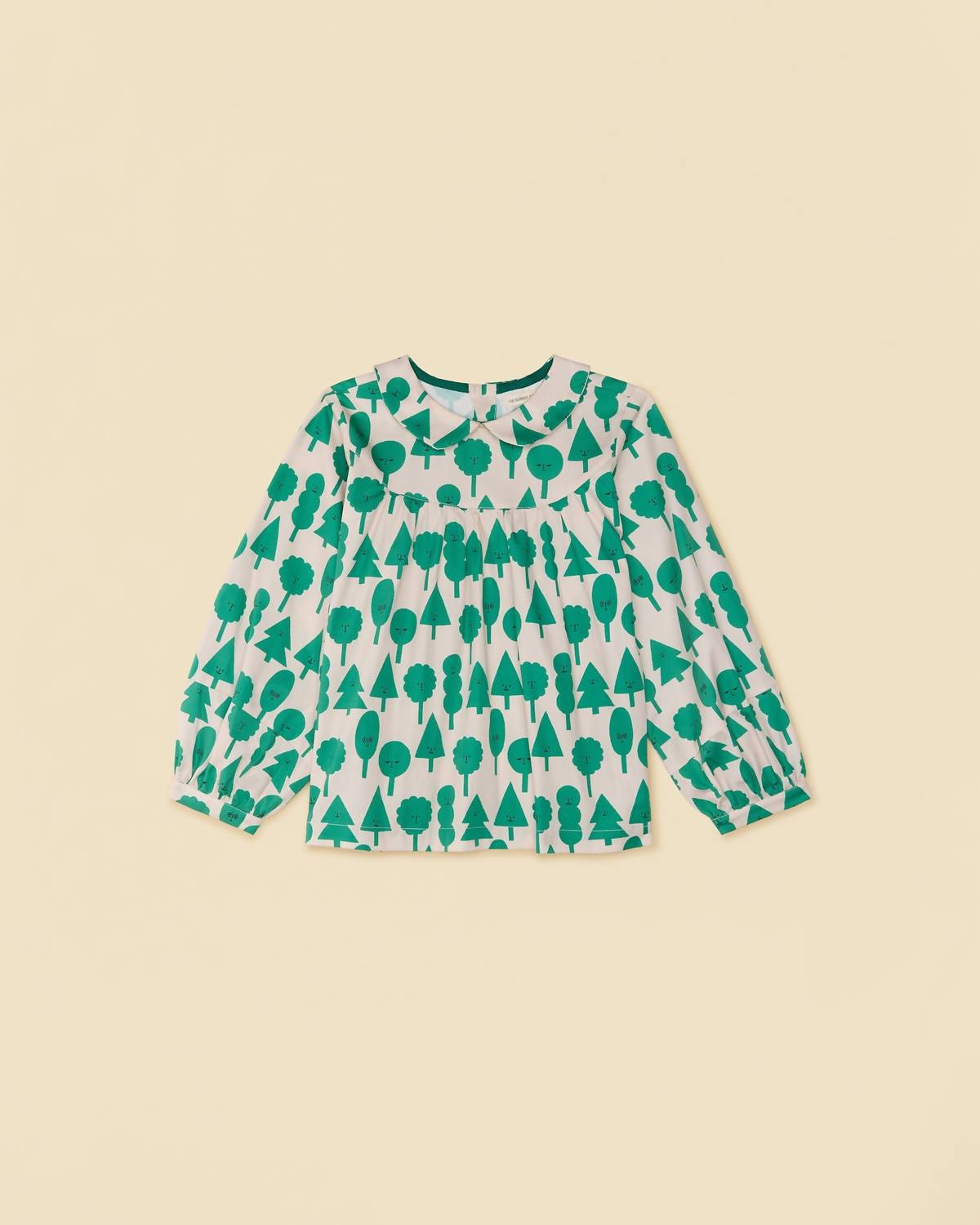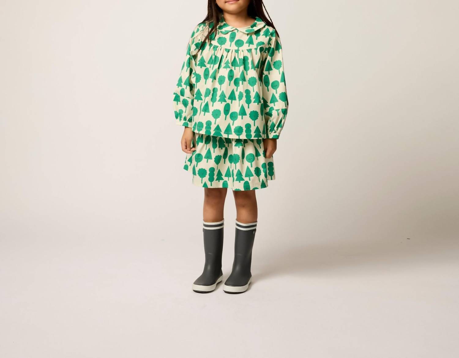Introducing the Girl's Meadows Blouse by The Sunday Collective, a charming addition to any wardrobe in the Forest Friends pattern. This blouse features playful balloon sleeves and an adorable Peter Pan collar for a touch of whimsy. Made from lightweight cotton twill, it ensures comfort throughout the day. Closure: Button closure. Care: Machine wash. 100% Cotton.
