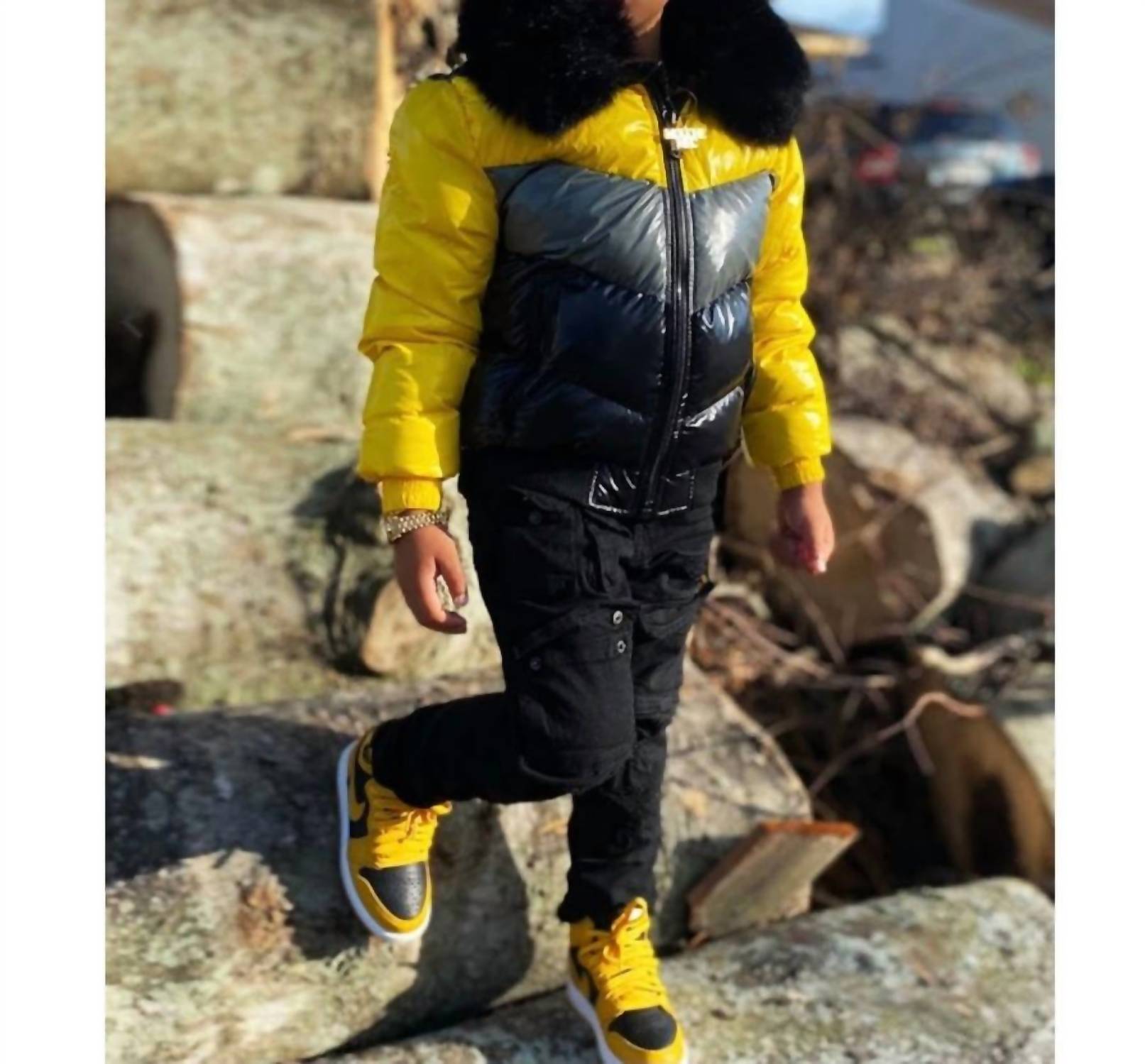 Perfect for your little one’s winter wardrobe. Stylish essential in a vibrant sacramento hue. Crafted from a 100% nylon laqué shell with quilted padding and a 100% polyester lining. Ensures warmth and comfort. Features Jordan Craig branded zippers, dual side pockets with zipper closures, and a removable faux jackal fur collar for added versatility.