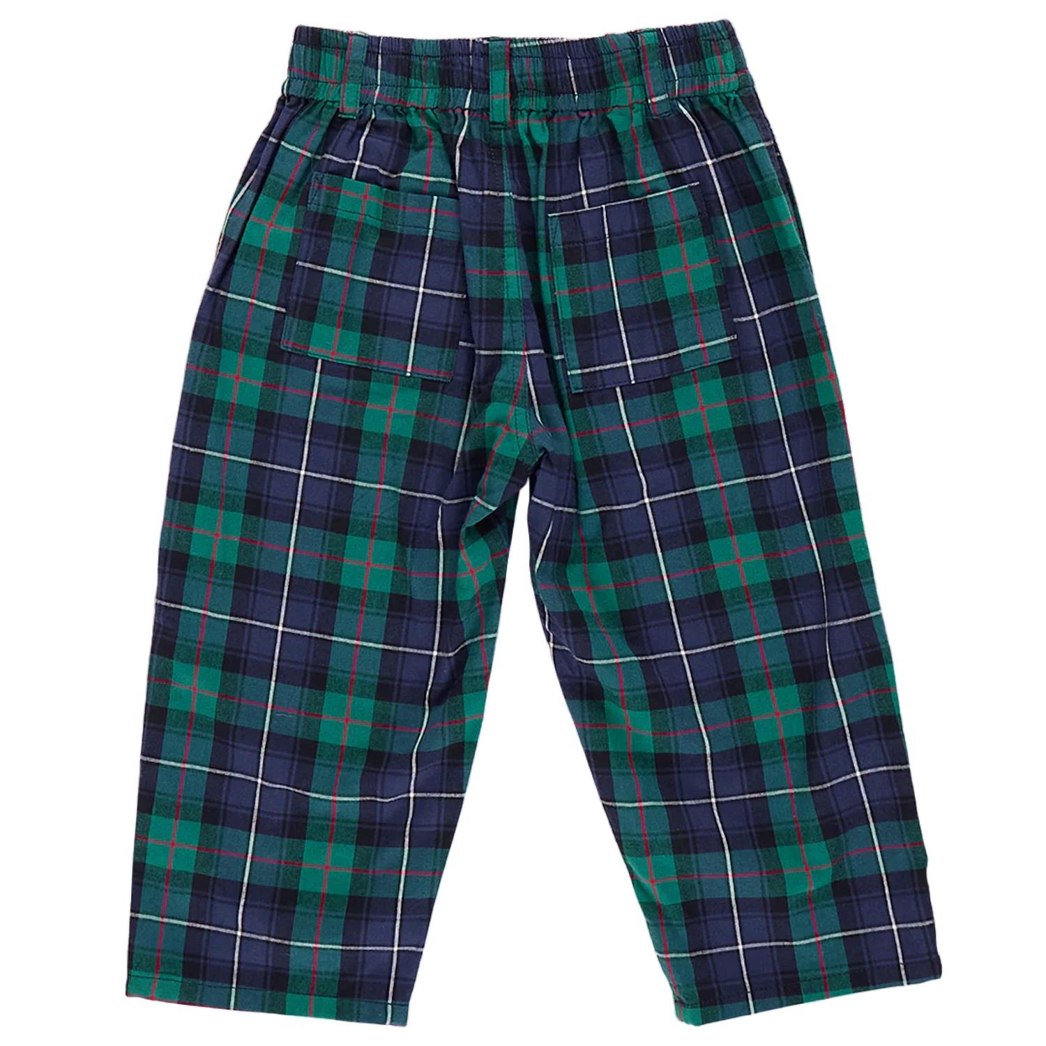 Step into the charm of the Scottish Highlands with Pink Chicken's Boys Jackson Pant in Green Tartan. These cotton pants feature an elastic waist and faux button closure for easy pull-on style, complete with belt loops and generous side pockets for convenience. Crafted from 100% cotton brushed twill and made in China, they promise comfort and durability. Care is simple with machine wash cold, gentle cycle, and low tumble drying, avoiding bleach for the best maintenance.