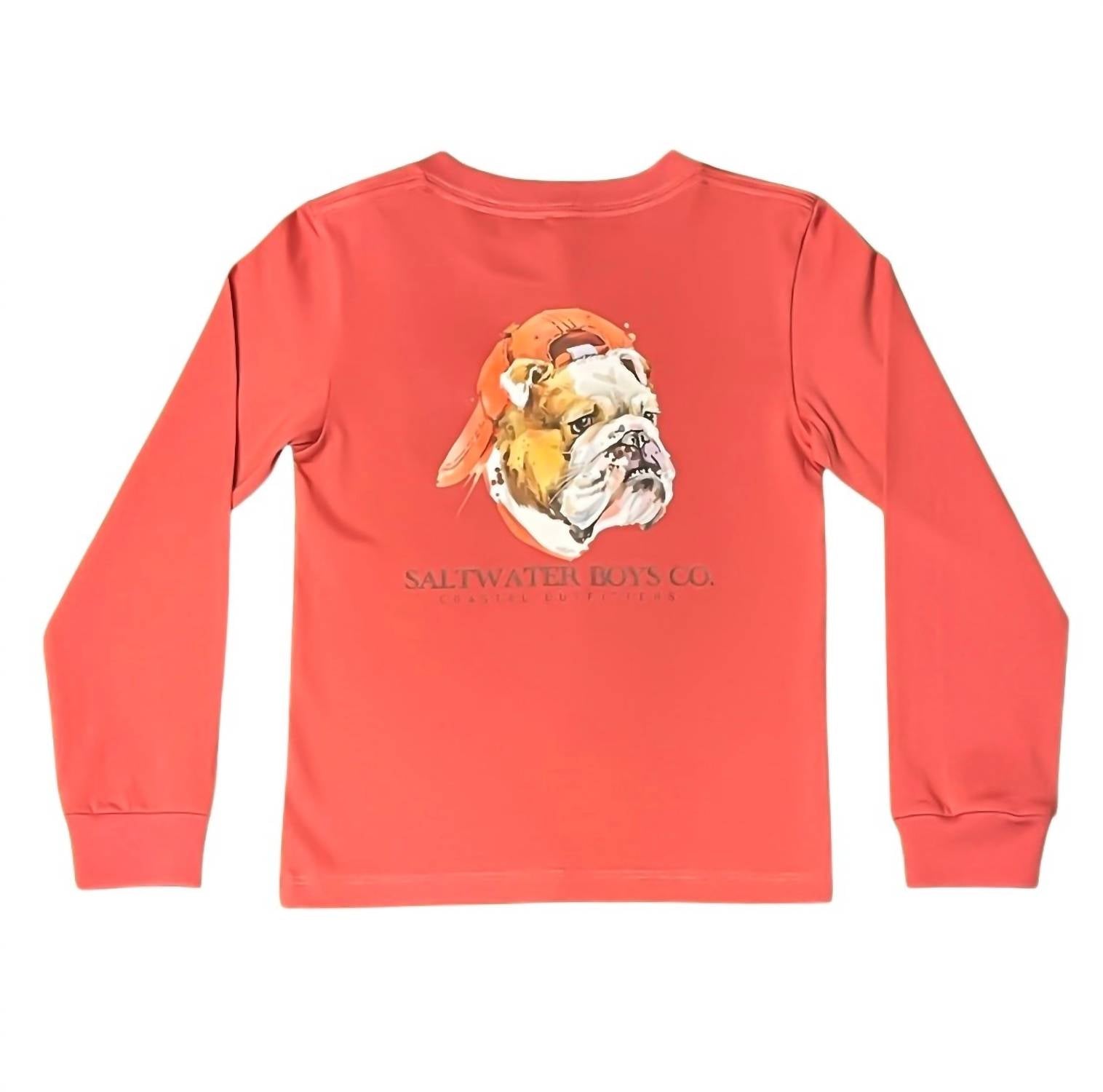 Charming pink hue. Perfect for boys who want to stay cool and comfortable. Crafted from 100% cotton. Long sleeve graphic tee feels as soft and cozy as a puppy snuggle. Front pocket. Relaxed, stylish vibe. Ensuring your little one is always ready for any occasion. Lets him express his playful spirit with ease. Time to get his 'bark' on and embrace the comfort of casual coolness.