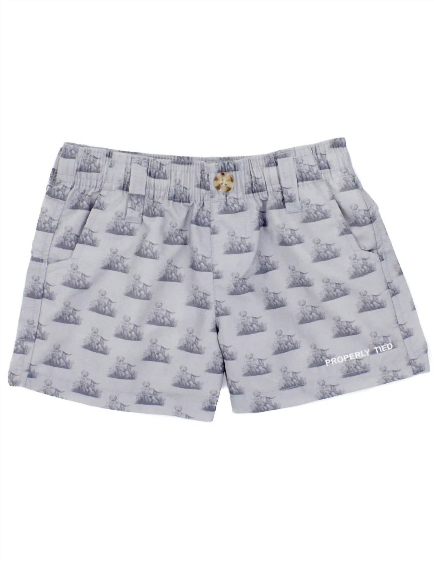 Introducing the Boys Spring Mallard Short by Properly Tied, a minimalist stone blue board short ideal for summer occasions. With a solid pattern, this stylish piece serves as a versatile choice for a range of events, from casual outings to dinner parties. Care instructions emphasize longevity, recommending hand washing and line drying to maintain its quality. Designed with a focus on comfort and style, these shorts are a must-have for the warmer season.