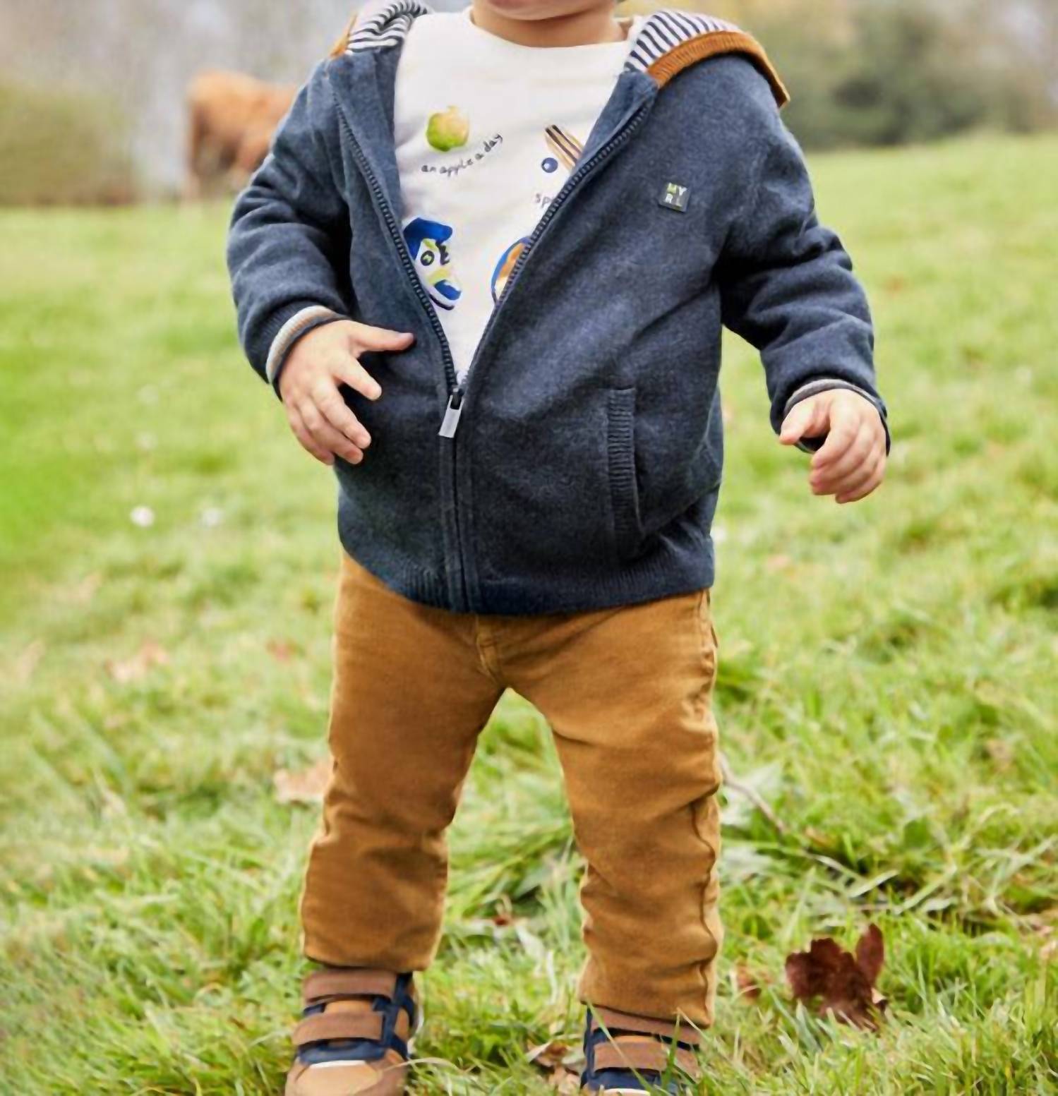 The Boys' Corduroy Slim Fit Trouser by Mayoral offers a sleek and stylish option for casual outings or a holiday party. With a timeless camel hue, these trousers feature classic five-pocket styling and belt loops for added practicality. A zip closure complements the solid pattern, while the adjustable waist ensures a comfortable mid-rise fit. Crafted from a cotton blend composed of 98% cotton and 2% elastane, these slim-fit, straight-leg trousers are easy to maintain with machine wash cold and tumble dry low care instructions.