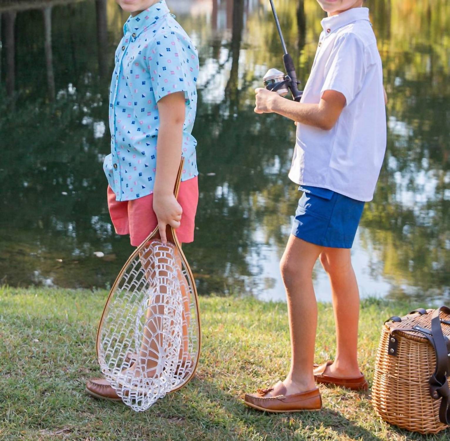 The PRODOH Boys' Short Sleeve Nautical Flag Shirt in Waterspout Green is the perfect blend of style and functionality for your young explorer. Crafted from 88% polyester and 12% spandex with a woven 4-way stretch, this shirt offers UPF 50+ protection and resists wrinkles and stains. It features a full button-down placket with extra buttons included, and is designed in the USA. Easy care with machine wash and line dry instructions ensures it's ready for any adventure.