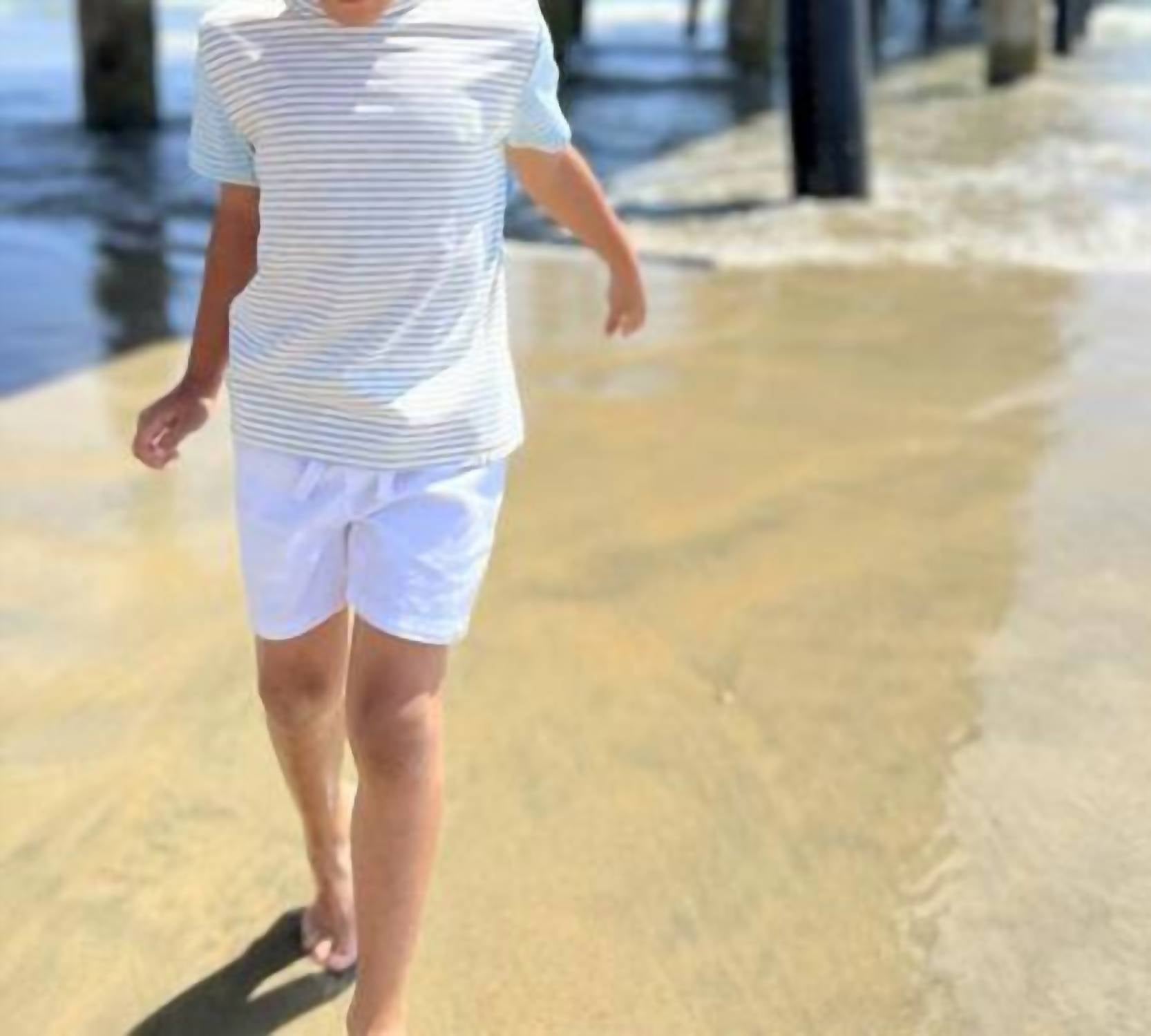 This short sleeve tee features a striped pattern, crewneck, and pull-on style. Made from 90% rayon, 5% polyester, and 5% spandex.