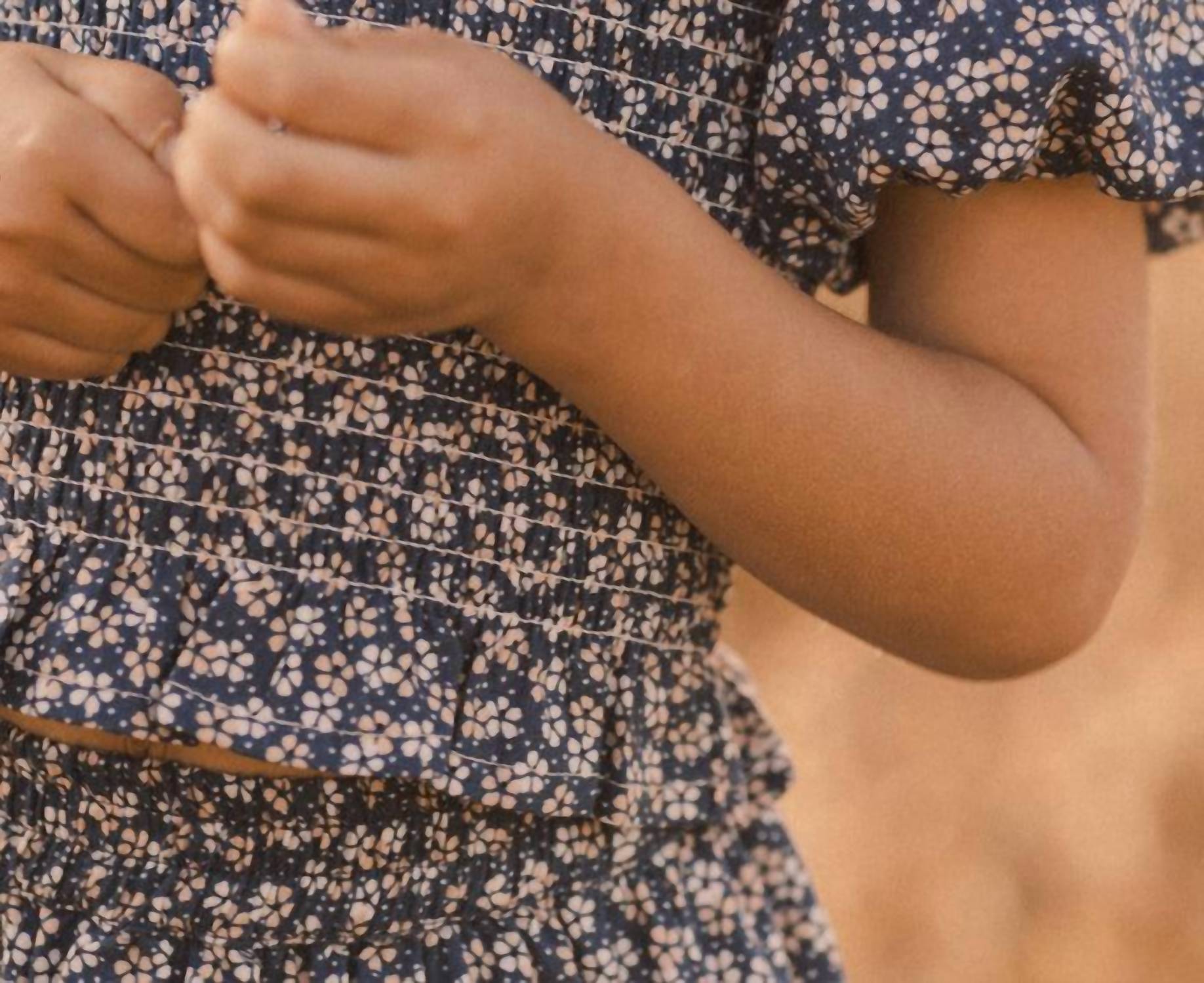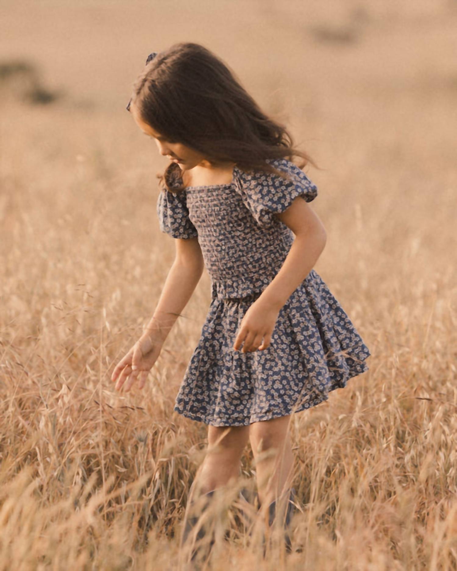 Introduce your little one to charming style with the Trixie Top by Rylee + Cru, beautifully decorated in a Blue Floral pattern. This girl's blouse features delightful puffy sleeves with a smocked bodice composed of a 55% Linen, 45% Cotton blend. Designed for versatility and ideal for spring, this top can be effortlessly dressed up or down for various occasions. Care for it with machine wash cold and tumble dry on low, but note that shrinkage may occur if tumble dried.