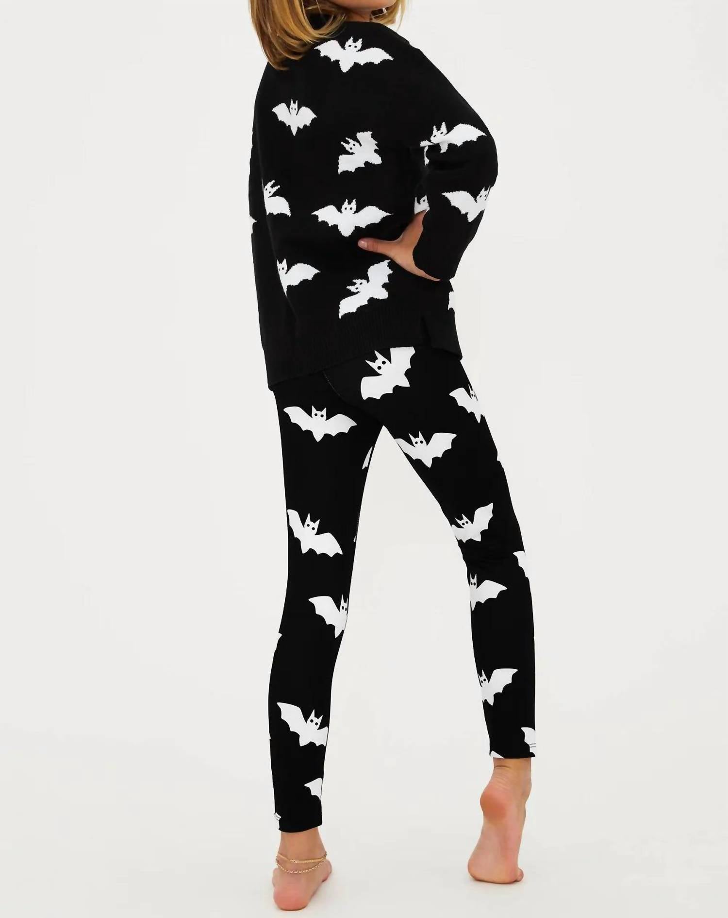 Introducing the Girls' Little Callie Sweater by Beach Riot, a perfect piece for the fall season and Halloween festivities. Crafted from lightweight cotton, this sweater features an animal pattern in a unique "Bats" color. Designed with a crew neckline, it can be effortlessly paired with the matching Peppa Legging for a coordinated look. Care instructions are simple: hand wash and lay flat to dry.
